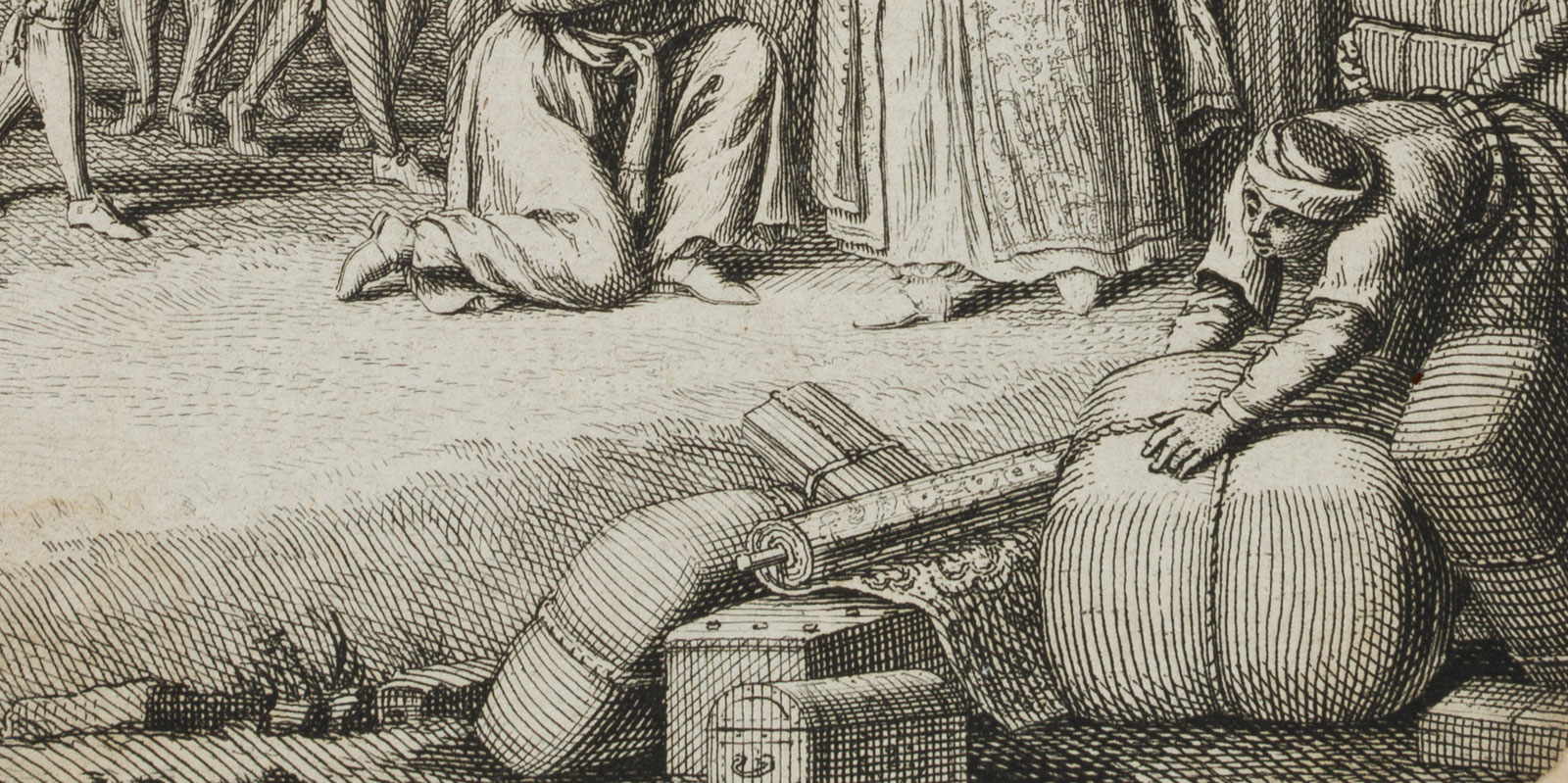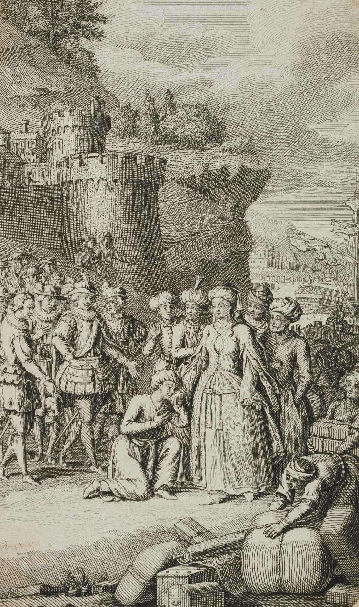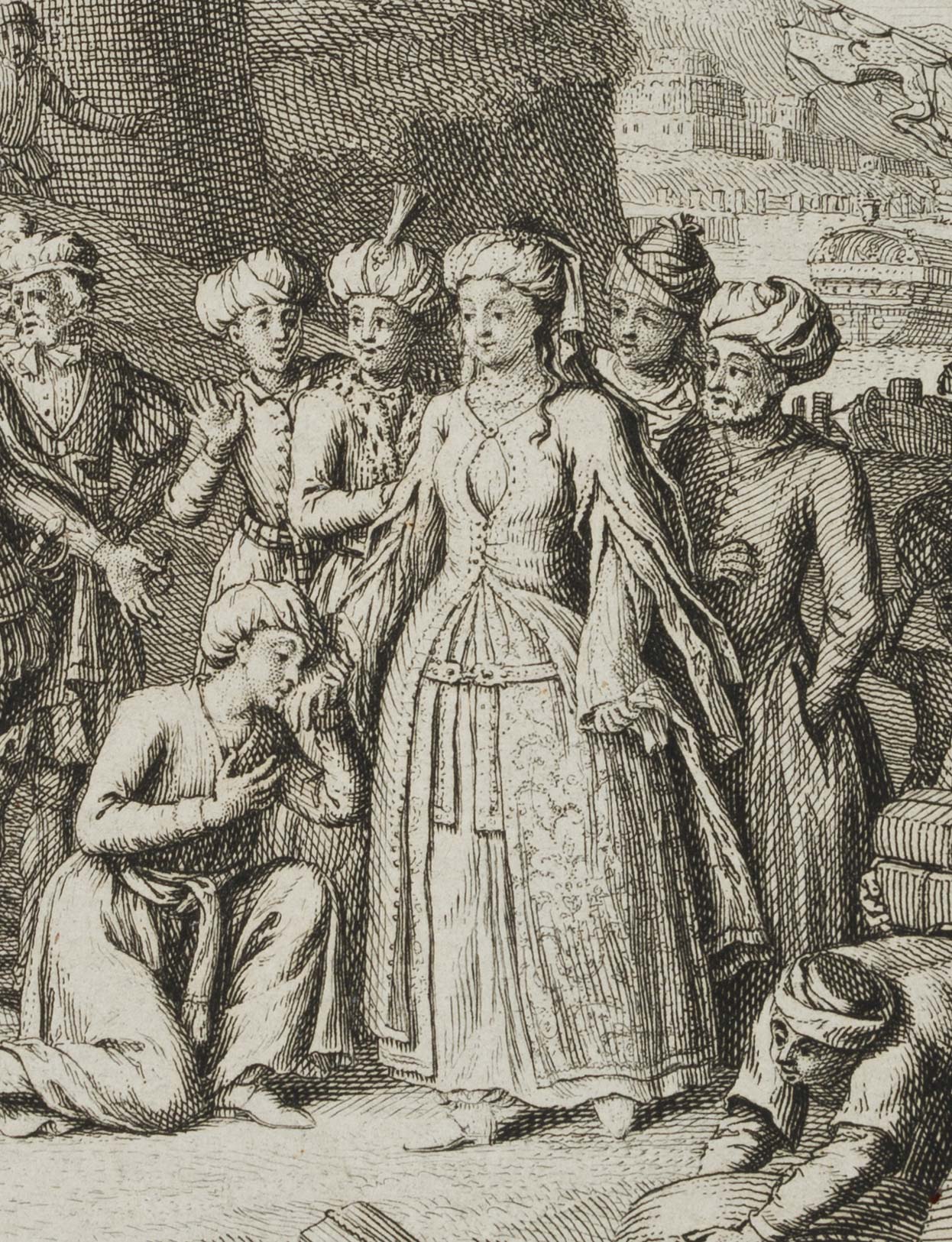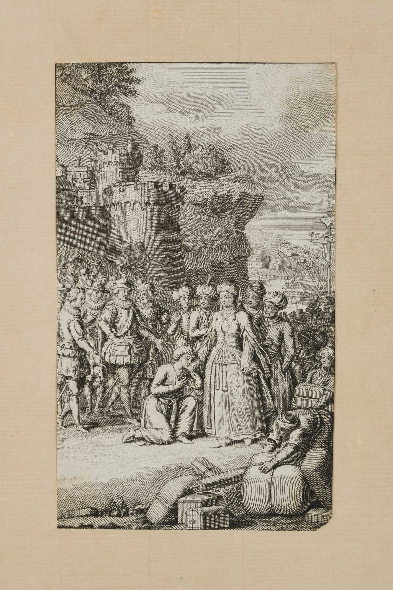 François-Antoine Aveline (1718 – um 1762 ) nach Jacob Folkema (18. Jahrhundert), Literaturillustration, Empfang einer orientalischen Prinzessin, 18. Jahrhundert, Radierung
