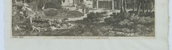 - Bezeichnung: Links unterhalb der Darstellung beschriftet, daneben mittig die Angabe: “A Paris chez N.Langlois rue St. Lacques a la Victoire”. Rechts oben auf dem Blattträger sind die Künstlernamen “Aveline fec. Küsell” mit Bleistift vermerkt.