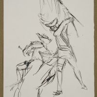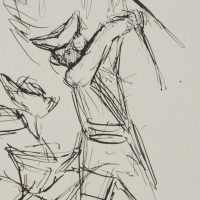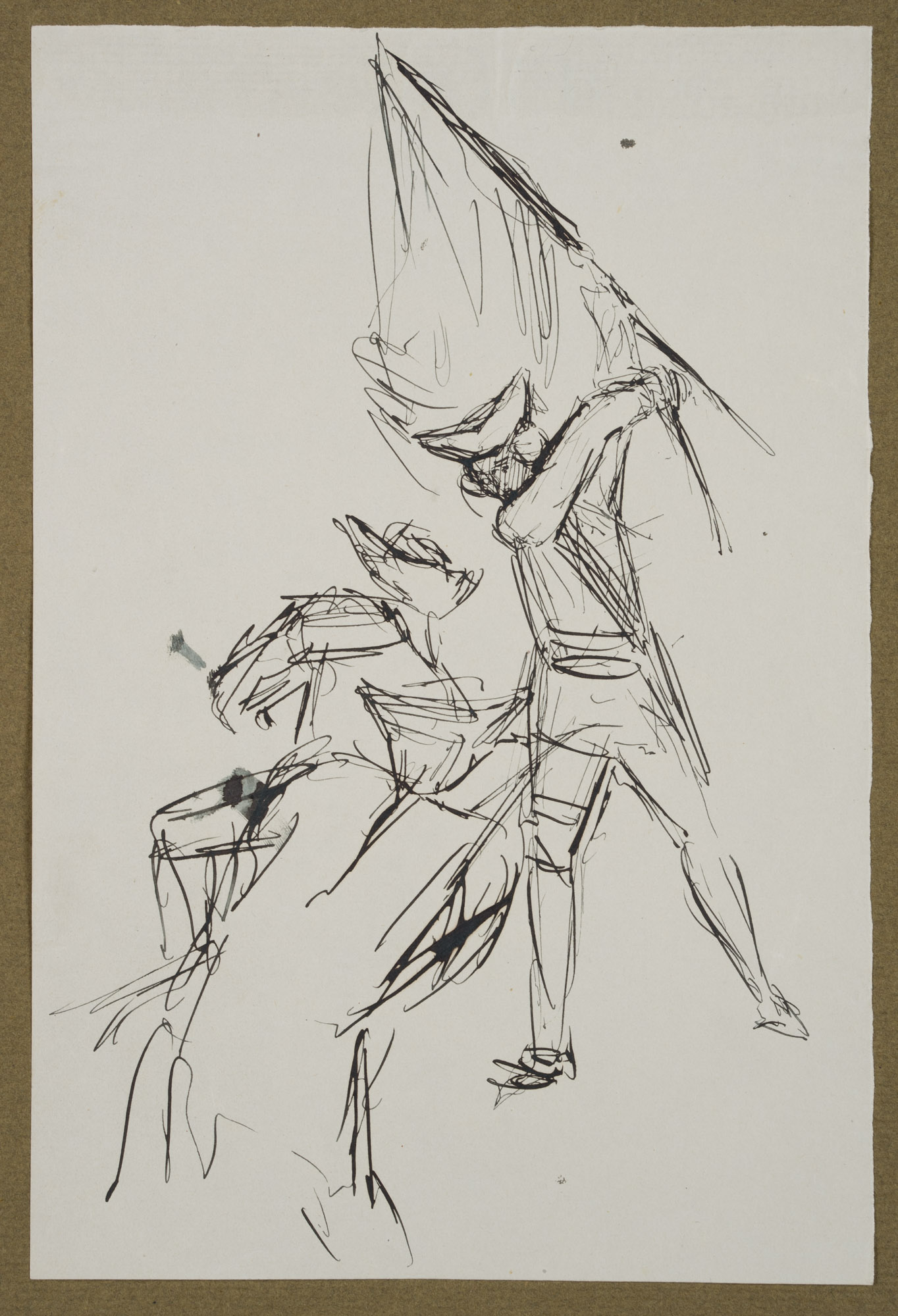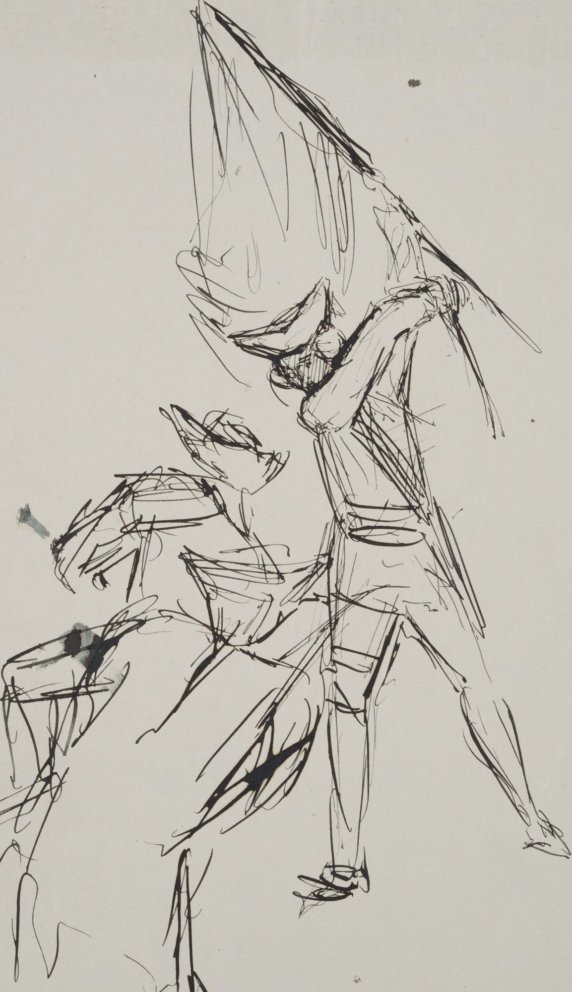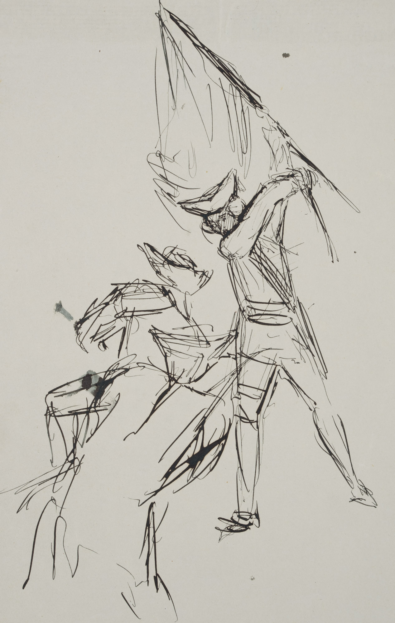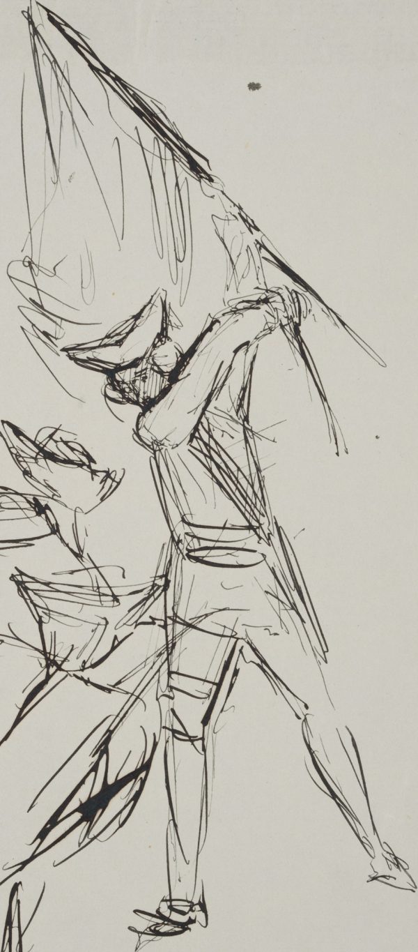 - Description: Dynamic quickly drawn depiction with soldiers in action. The sheet comes from a collection folder with drawings by Bruno Burger. Please note our further offer.