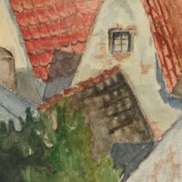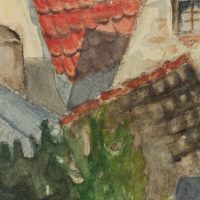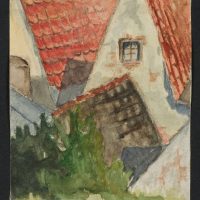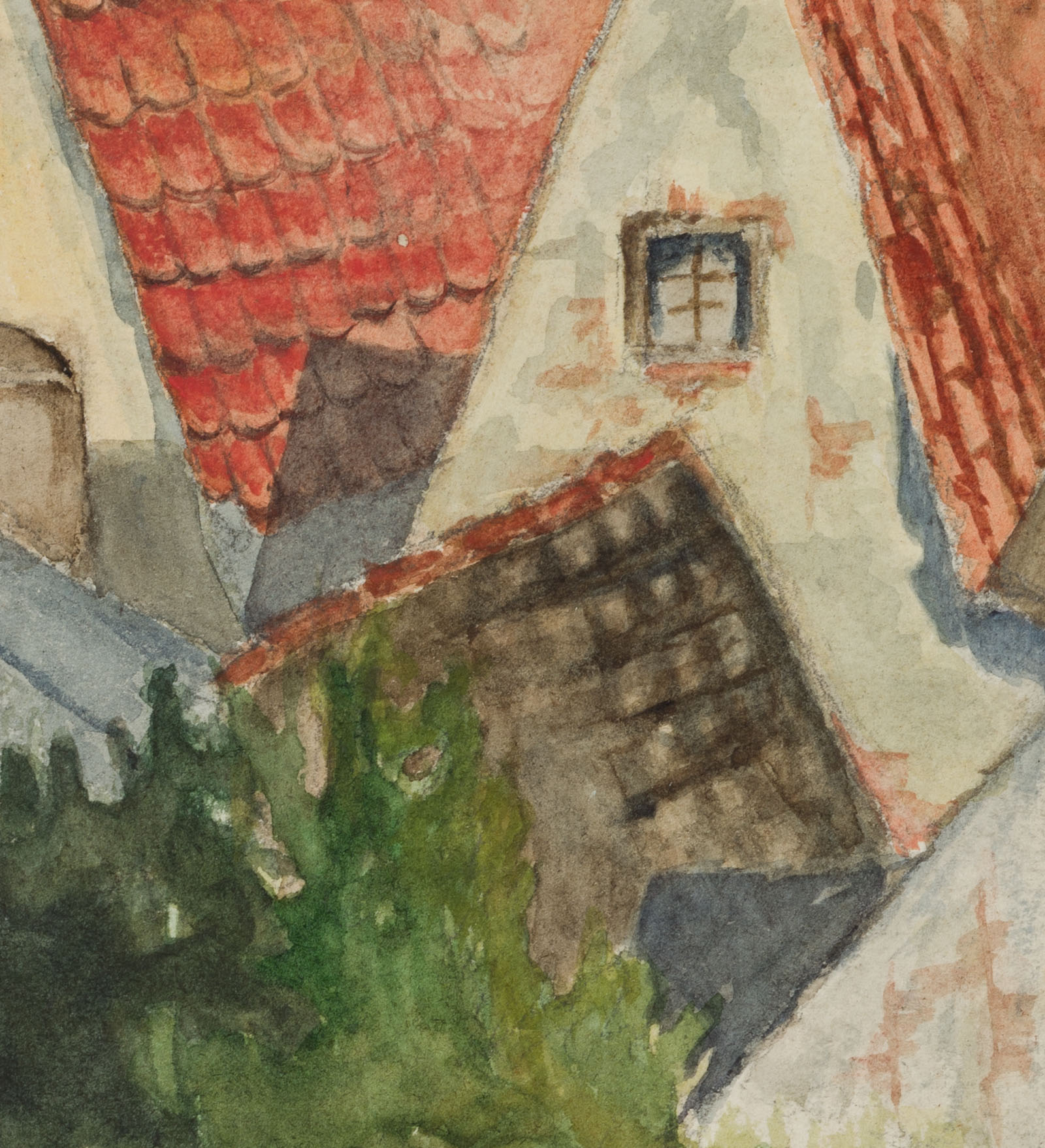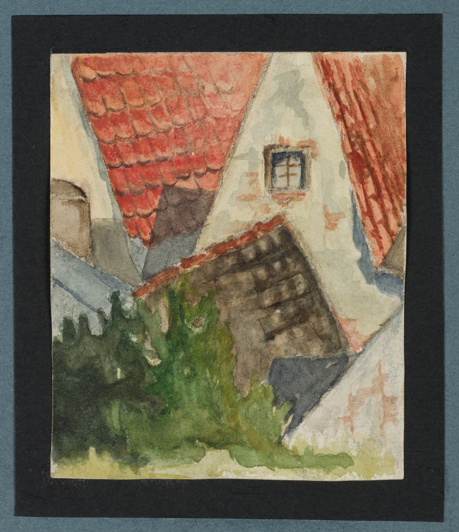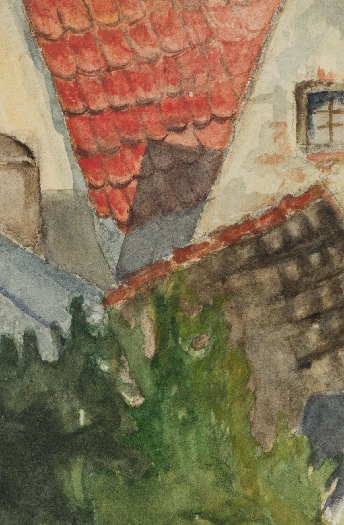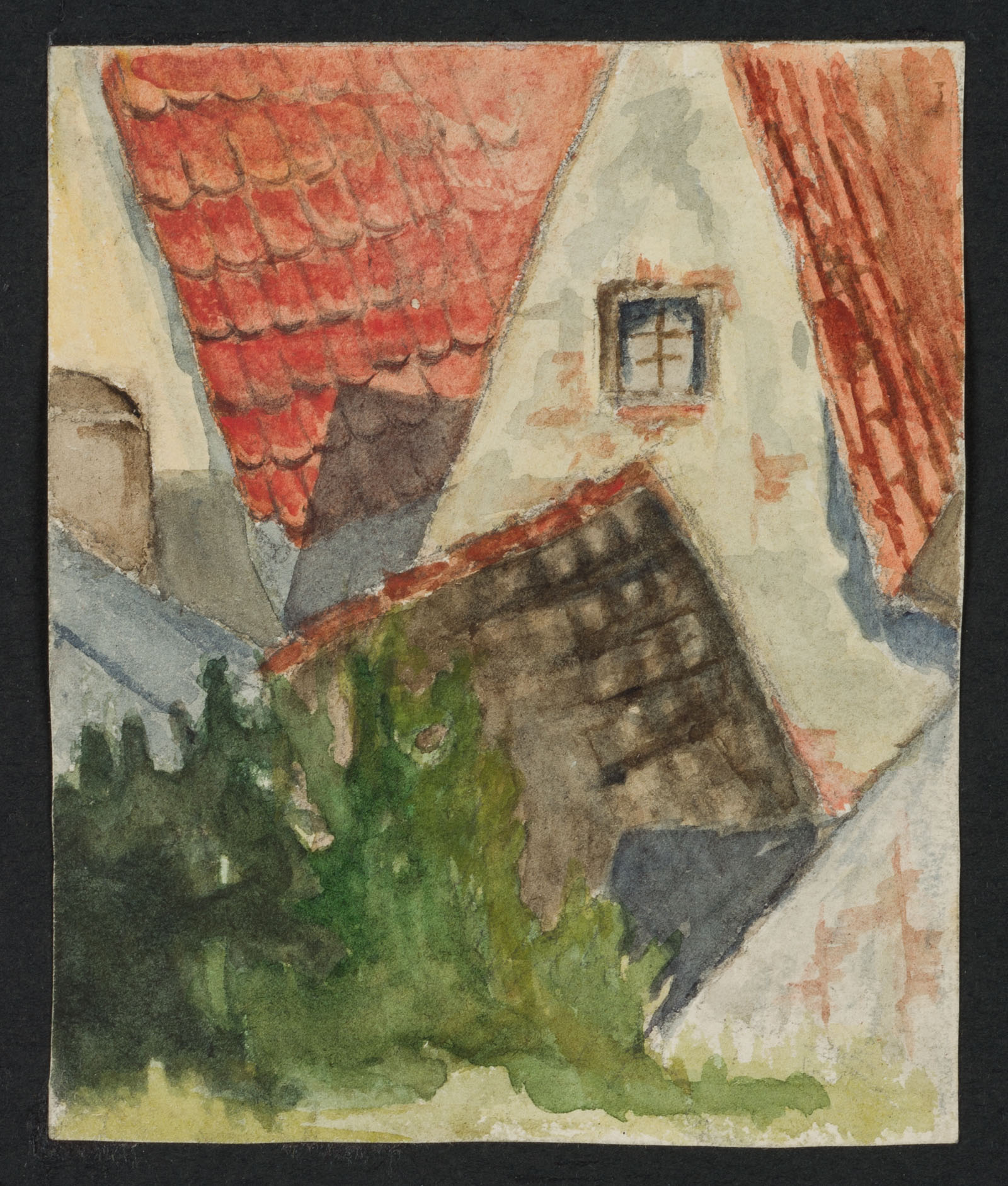 Bruno Burger (1892 – 1968 ), Detail of a house with a red roof, , Watercolor