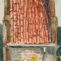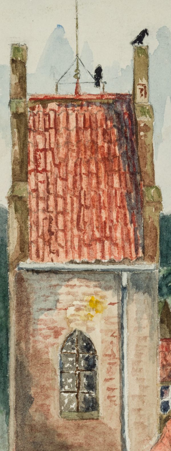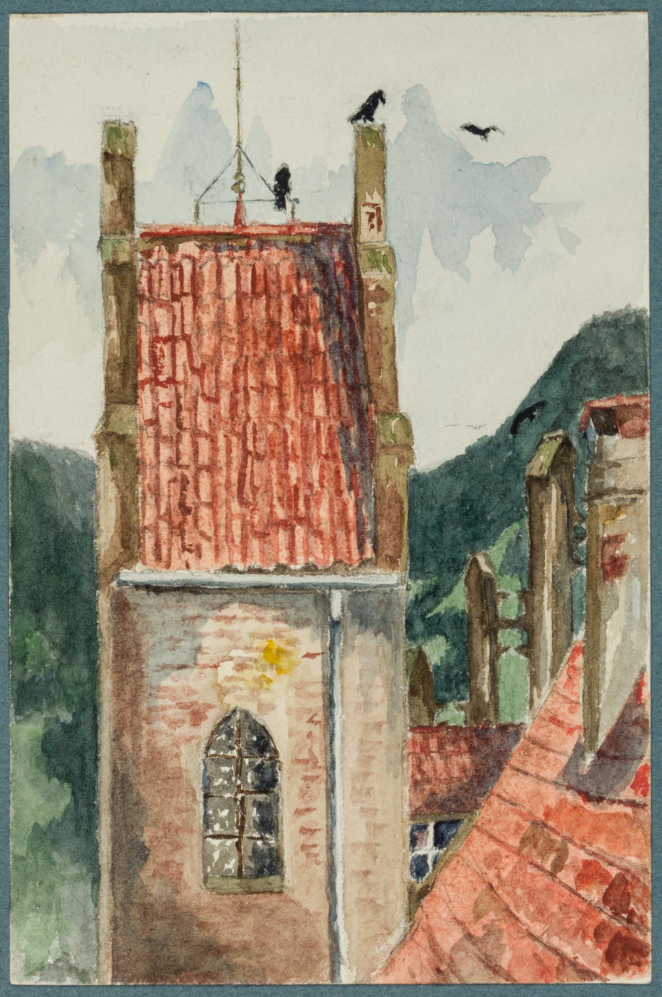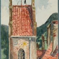 Bruno Burger (1892 – 1968 ), Brick tower and nave of a church, , Watercolor