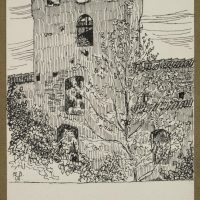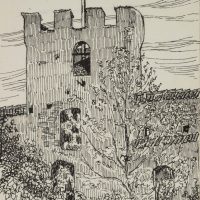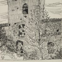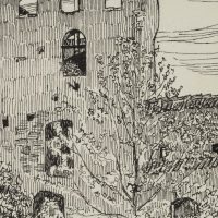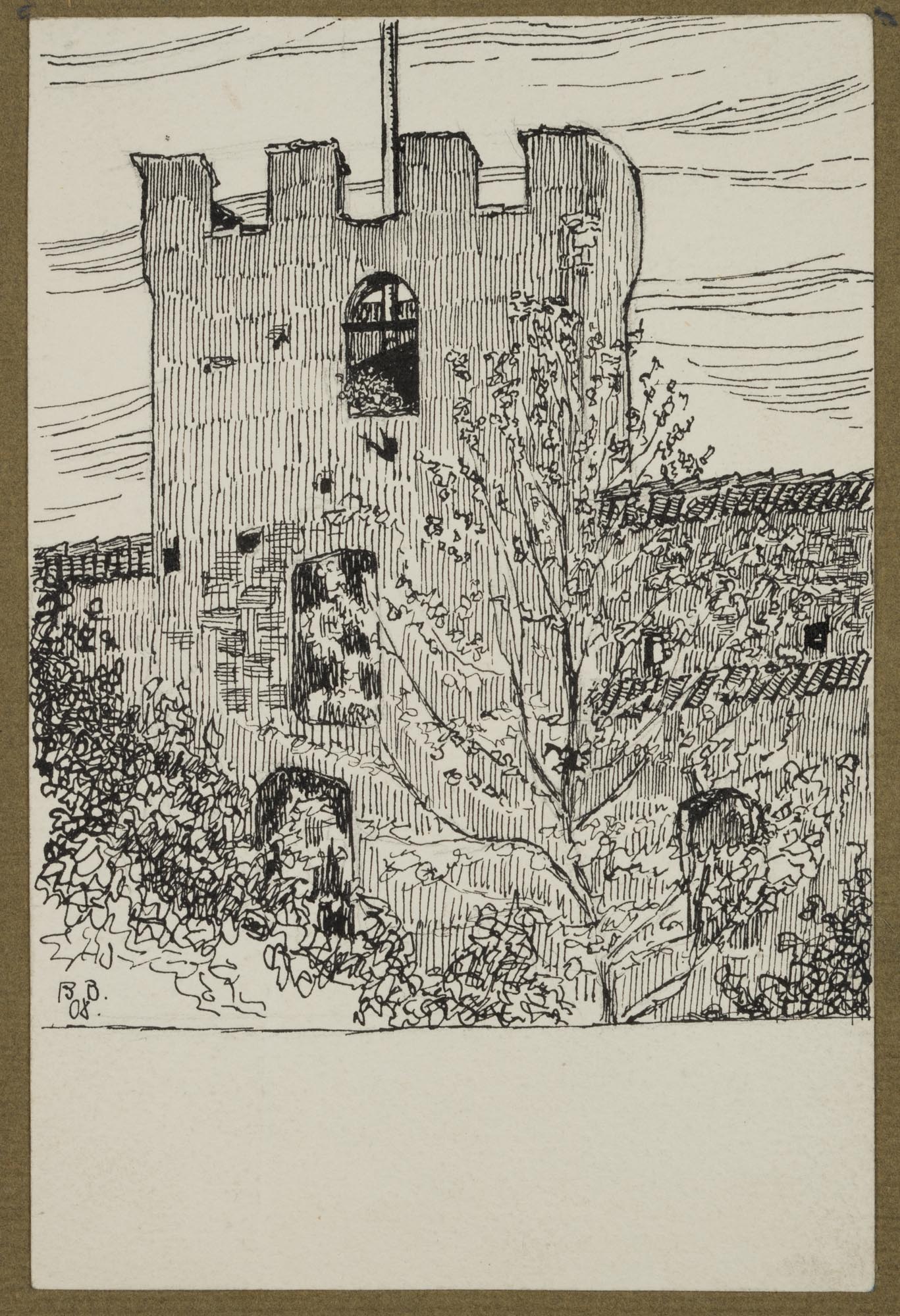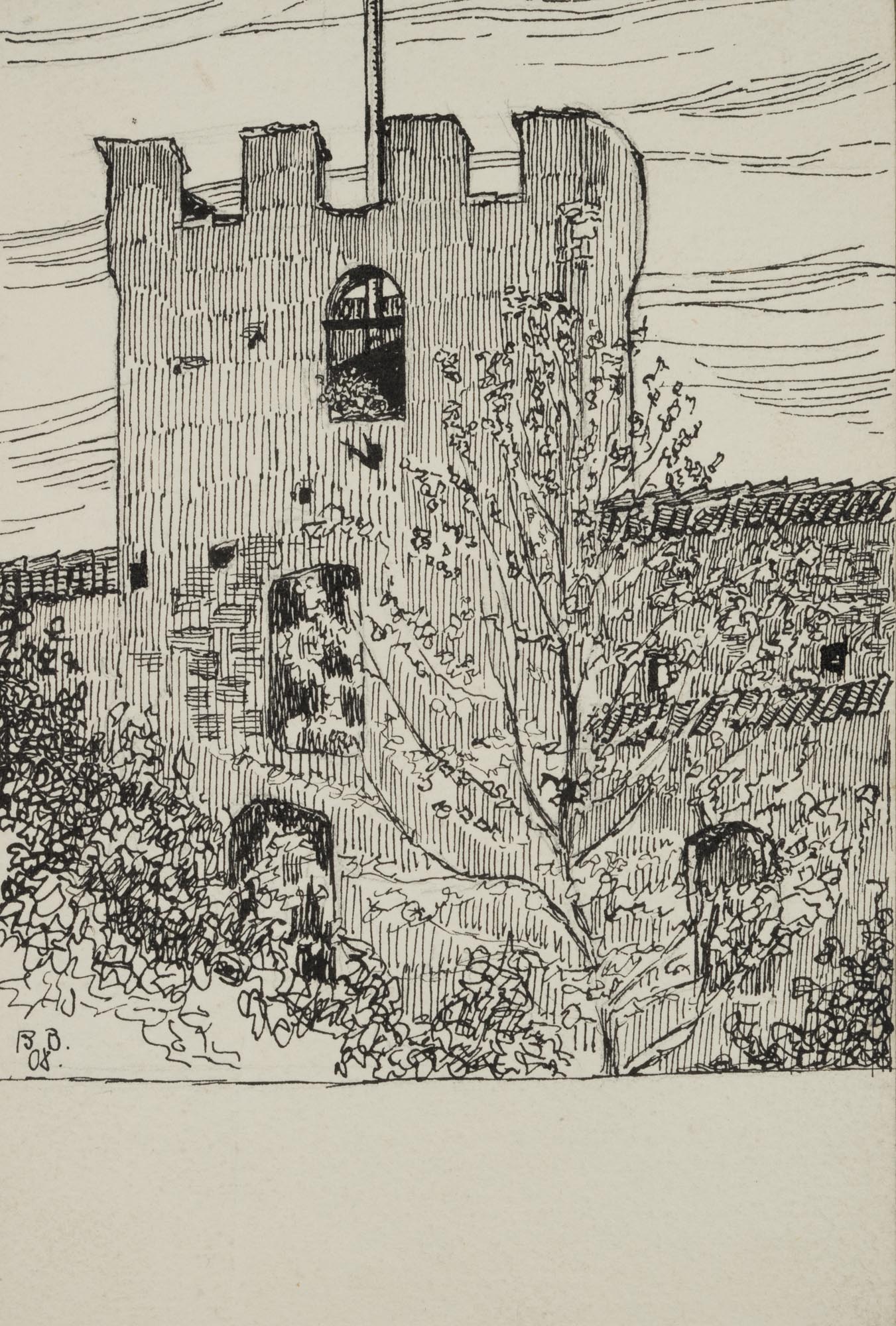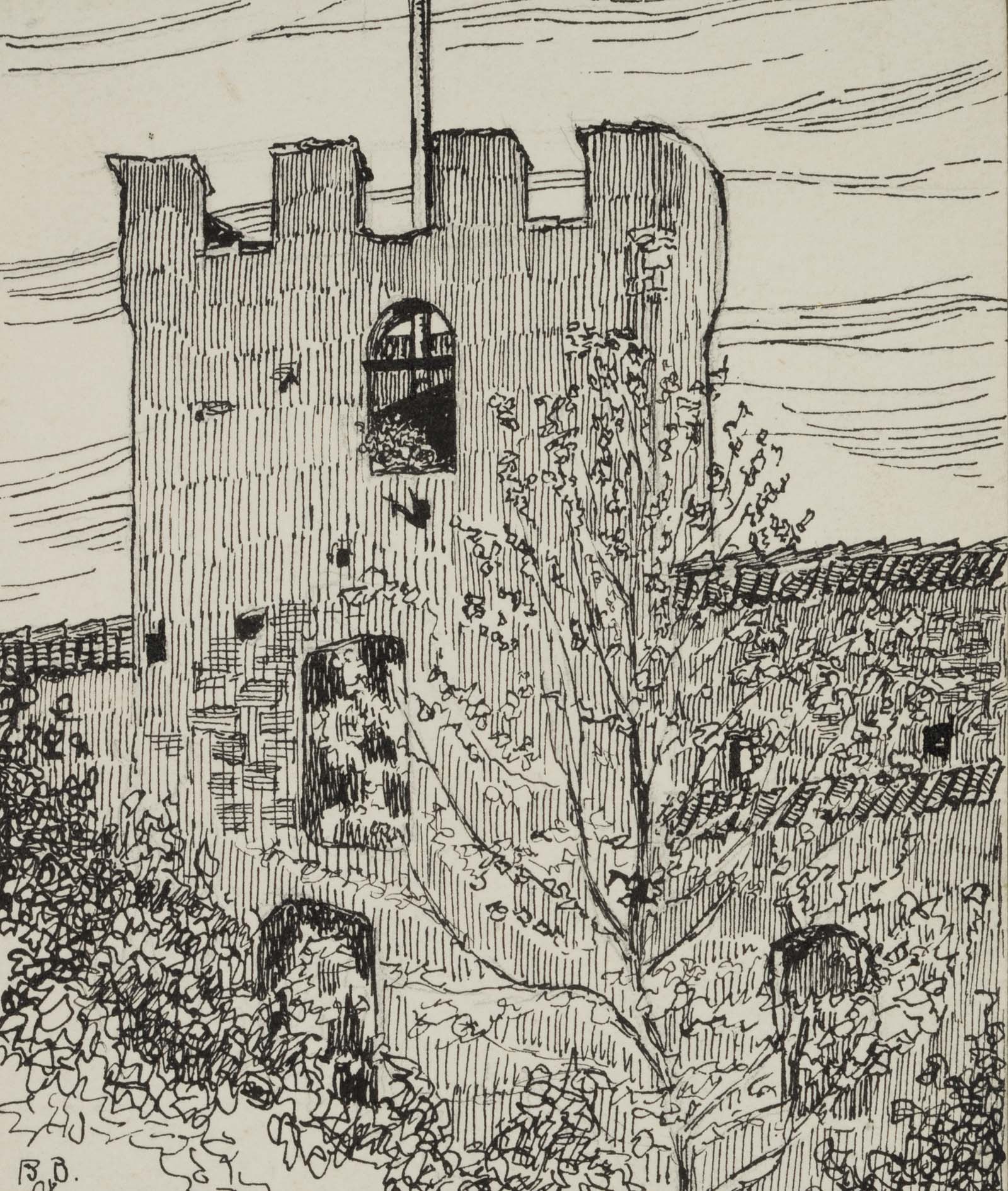 Bruno Burger (1892 – 1968 ), View of a fortress ruin overgrown with plants, 1908, Indian ink