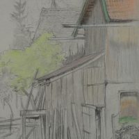 Bruno Burger (1892 – 1968 ), View of a backyard with shed and stacked firewood, 1915, Pencil