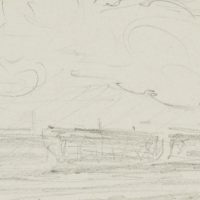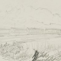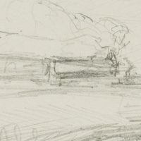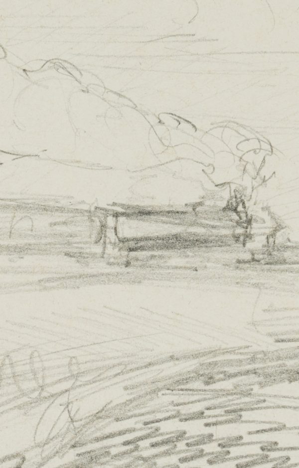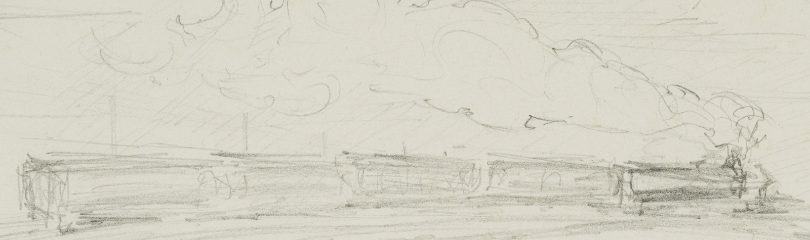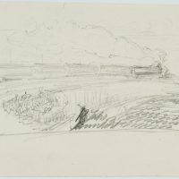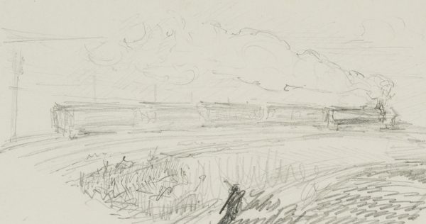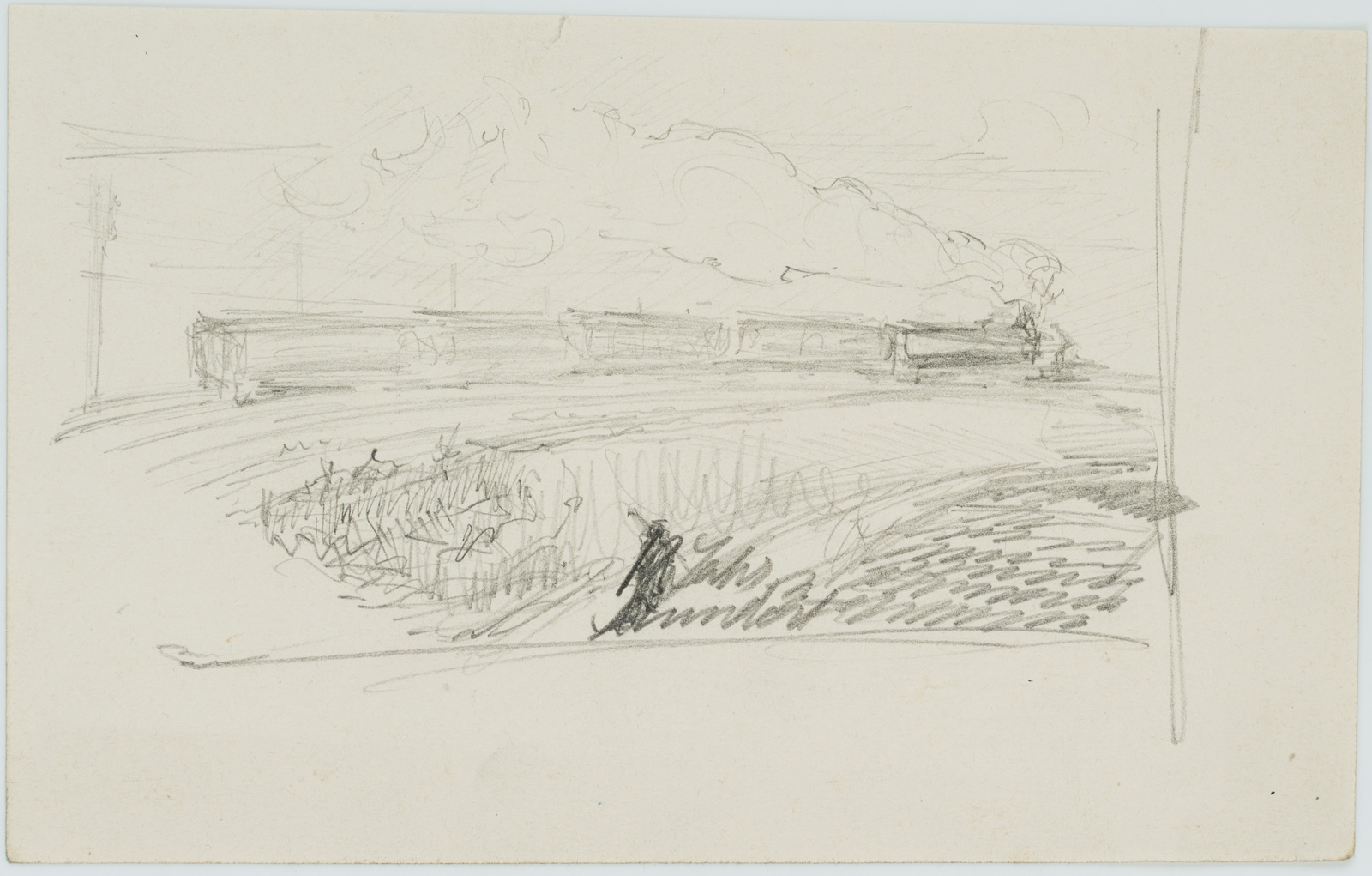 Bruno Burger (1892 – 1968 ), Dampflokomotive die durch die Landschaft fährt und eine große Dampfwolke hinterlässt, , Bleistift