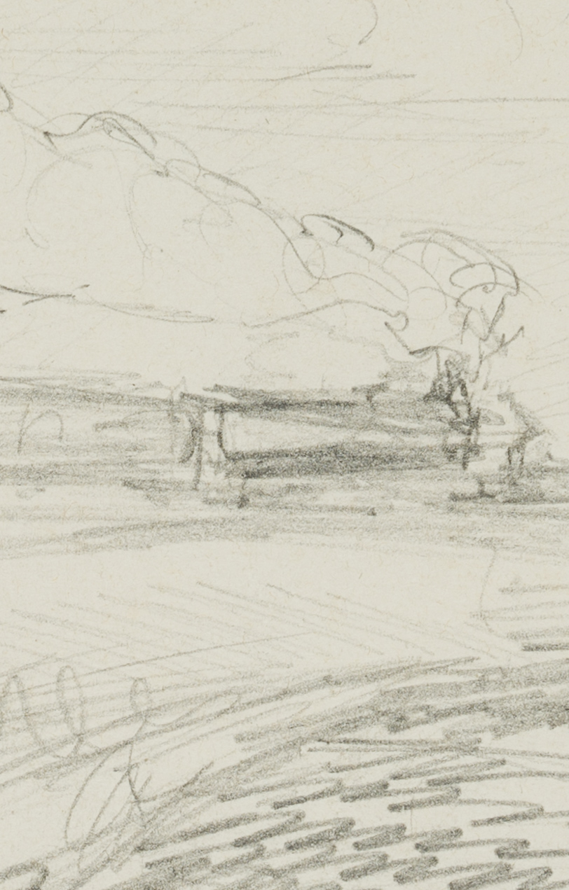 Bruno Burger (1892 – 1968 ), Steam locomotive driving through the landscape and leaving behind a large cloud of steam, , Pencil
