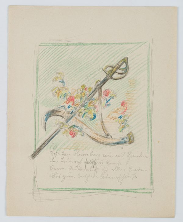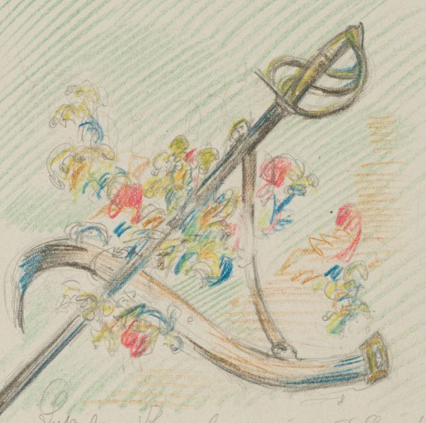 Bruno Burger (1892 – 1968 ), Epee with belt and flowers, , Colored pencil