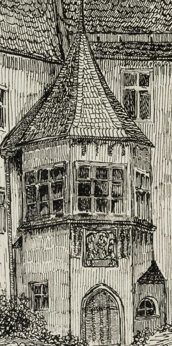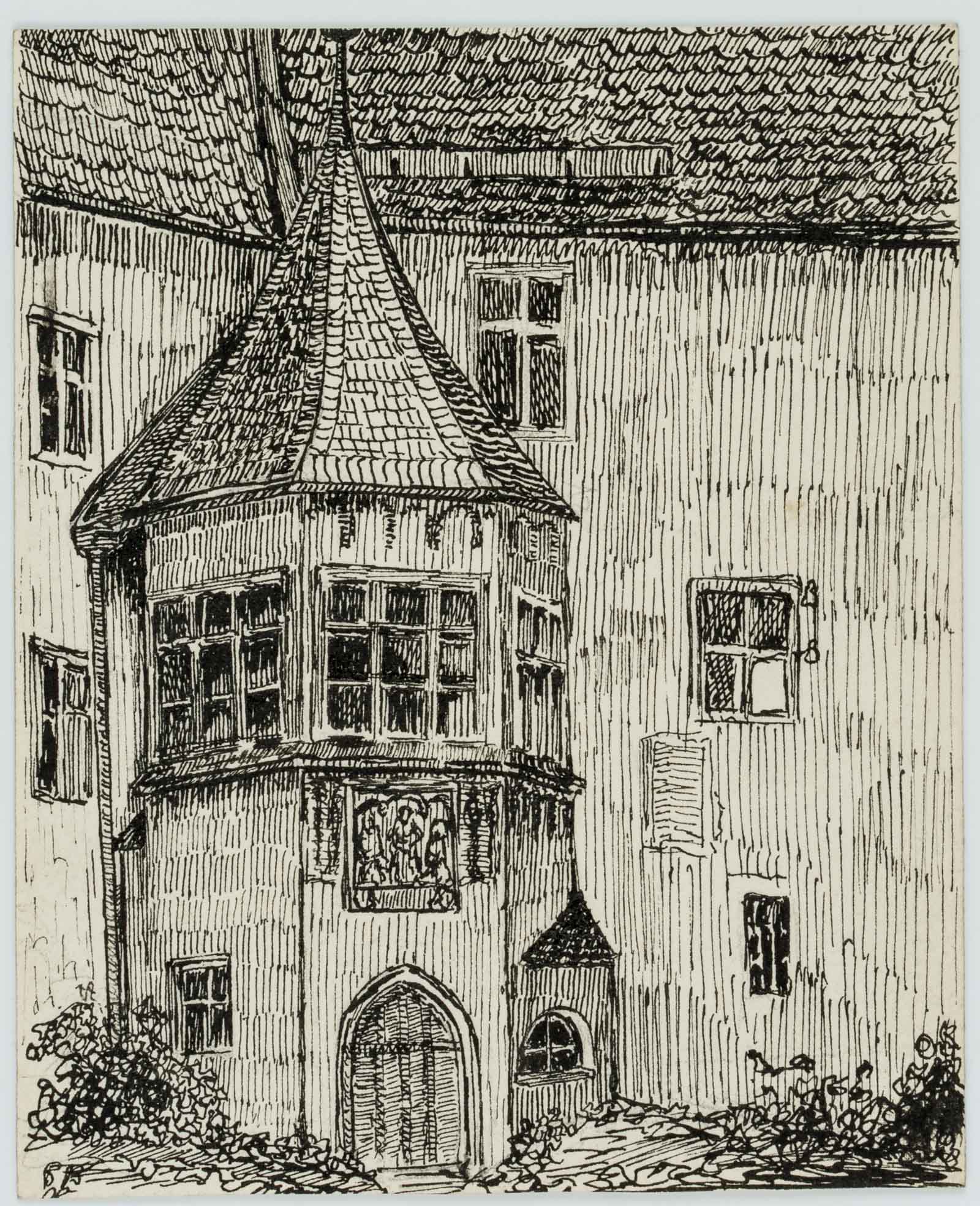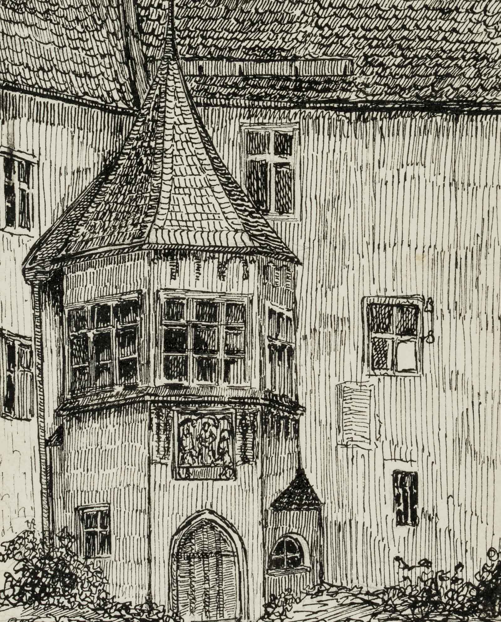 Bruno Burger (1892 – 1968 ), Detail view, The oriel entrance of the castle complex, , Indian ink