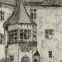- Description: The detailed view of a fortification shows a beautiful corner oriel with round arch entrance. The sheet comes from a collection folder with drawings by Bruno Burger. Please note our further offer.