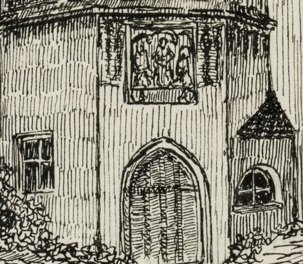 Bruno Burger (1892 – 1968 ), Detailansicht, Der Erkereingang der Burganlage, , Tusche