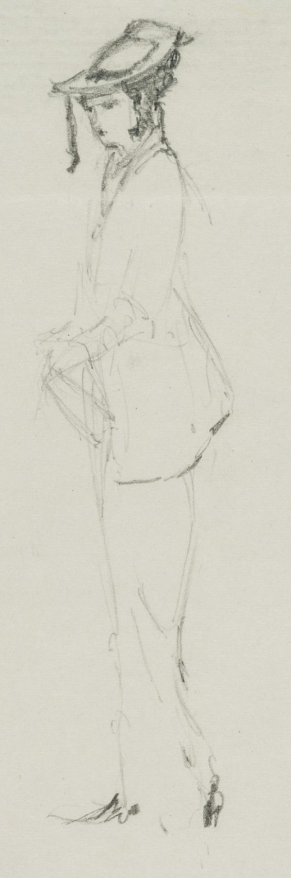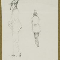 - Beschreibung: Feine Modezeichnung, unten rechts datiert: “1914”. Zwei Damen mit schlanker Silhouette und schmuckem Hut präsentieren sich in einem eleganten Kostüm und Kurzmantel. Das Blatt stammt aus einer Sammlungsmappe mit Zeichnungen von Bruno Burger. Beachten Sie dazu unser weiteres Angebot.