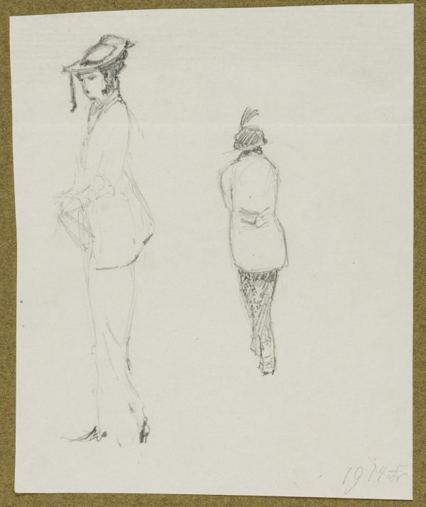 Bruno Burger (1892 – 1968 ), Elegant Ladies with Hat, Costume Study, 1914, Pencil