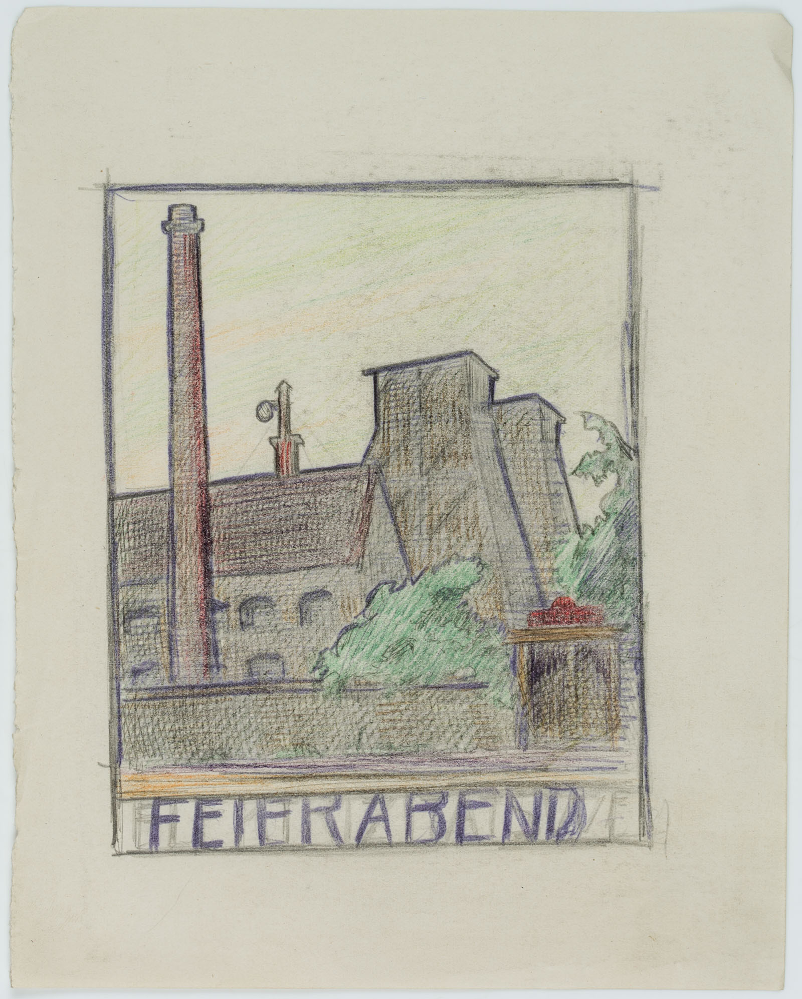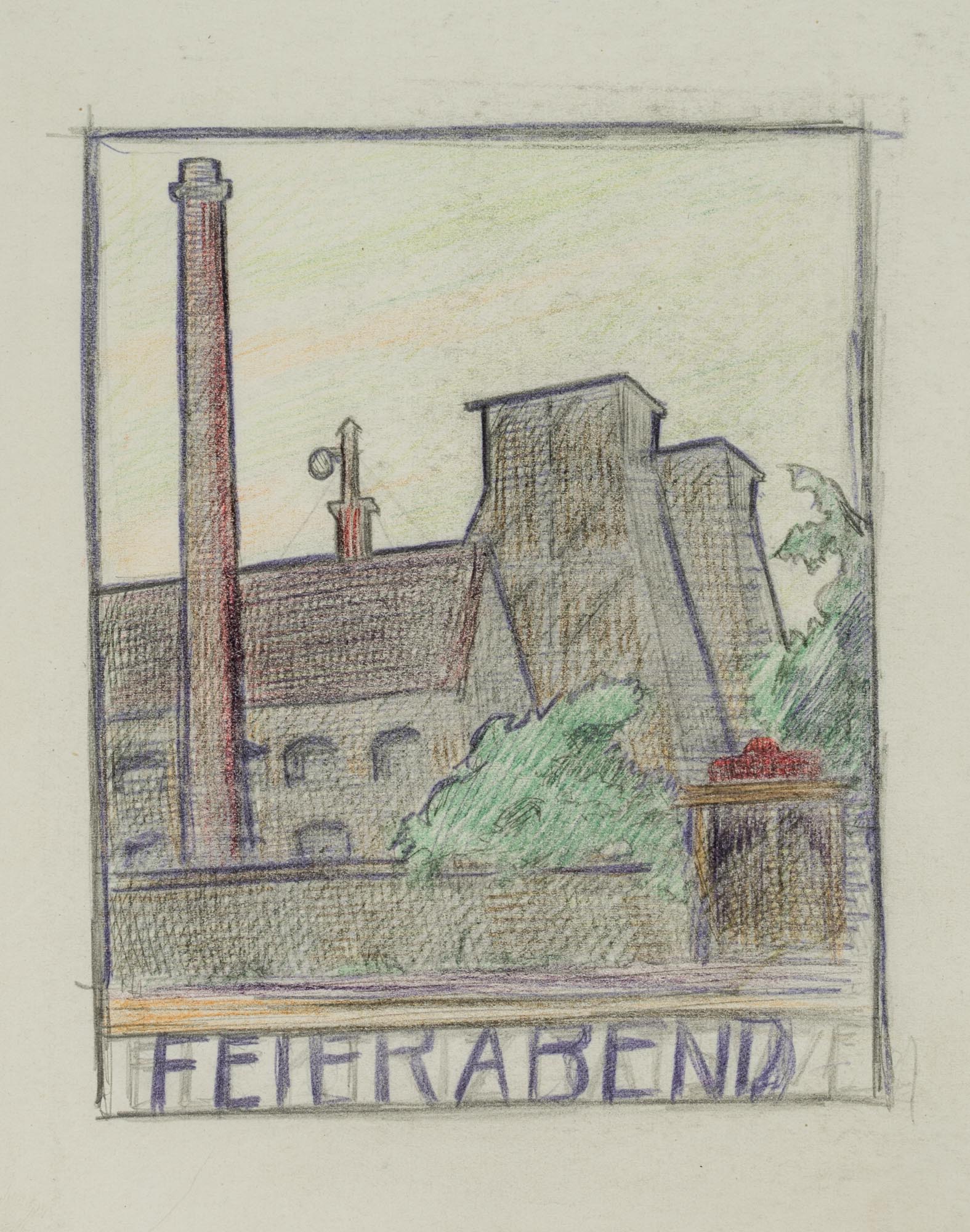 Bruno Burger (1892 – 1968 ), “Feierabend”, view of a factory site, , Colored pencil