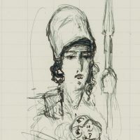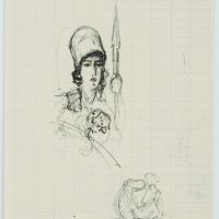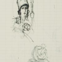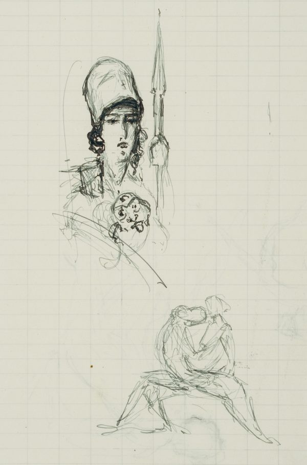 Bruno Burger (1892 – 1968 ), Zwei Figurenstudien auf einem Blatt: Kriegerin mit Speer und Zwei Figuren, , Tusche