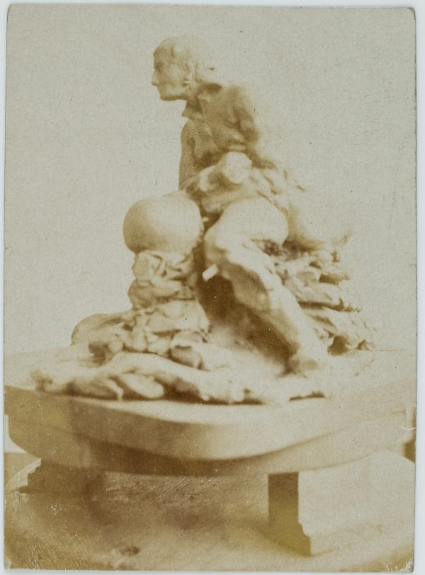 Bruno Burger (1892 – 1968 ), Fotografie einer Skulptur. Rastender Soldat mit Helm, , Original-Fotografie