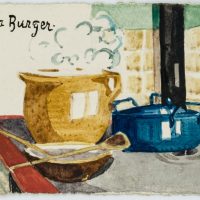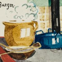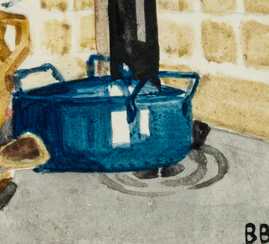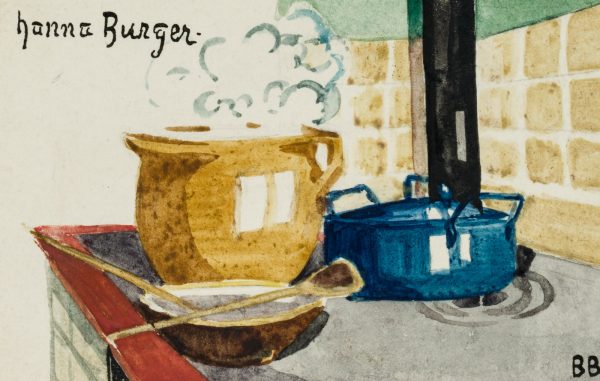 Bruno Burger (1892 – 1968 ), Cooker with pots and jug, for “Hanna Burger, , Watercolor
