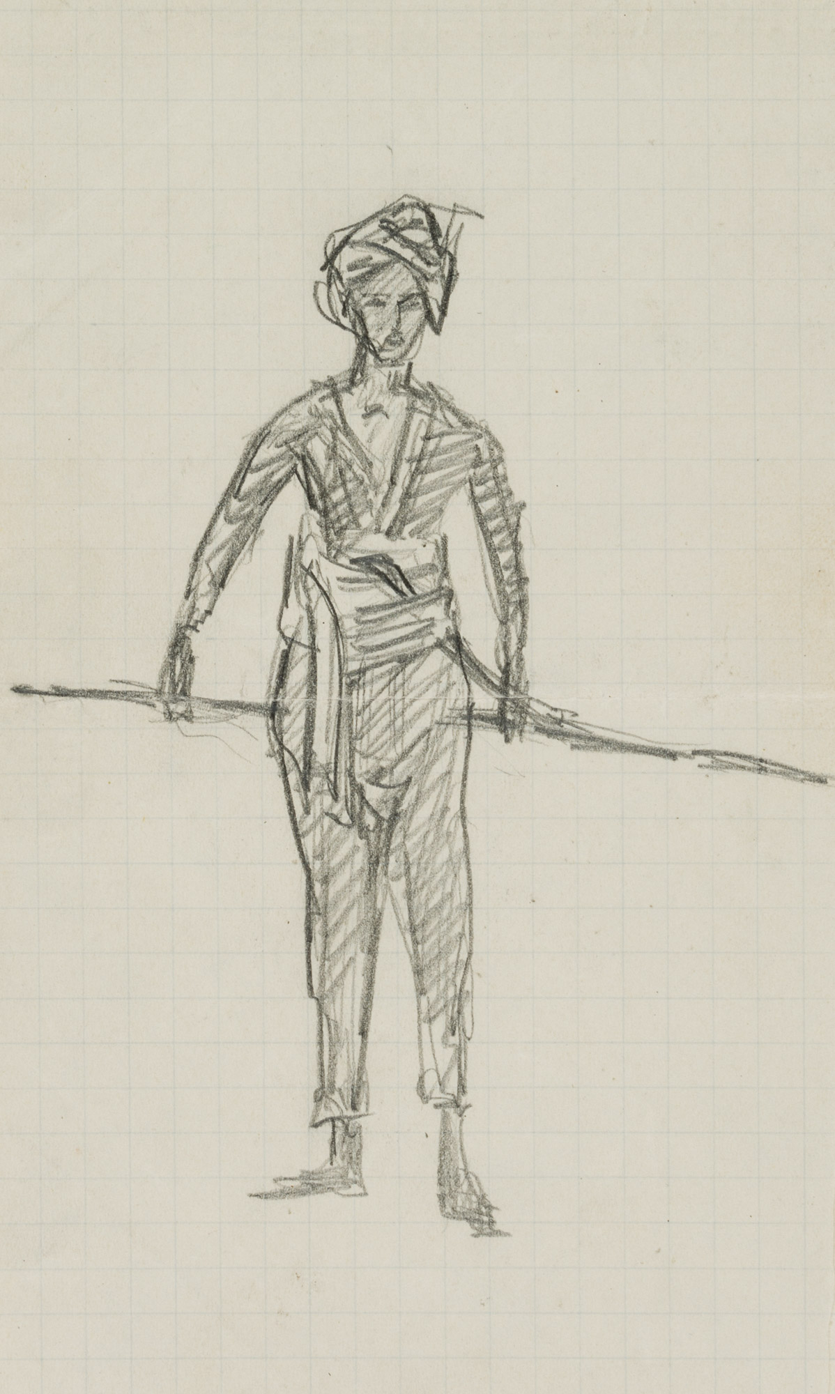 Bruno Burger (1892 – 1968 ), Costume study with turban, full body study, , Indian ink