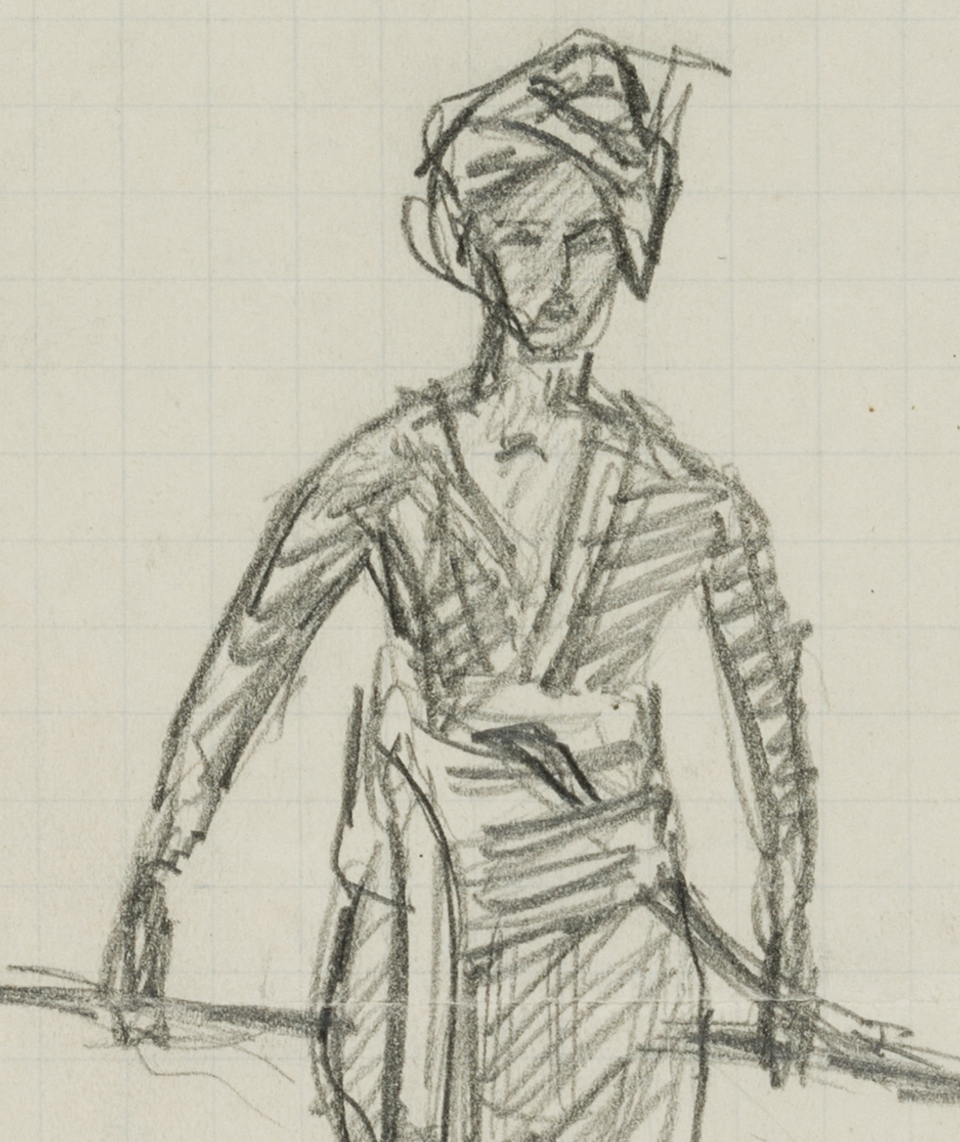 Bruno Burger (1892 – 1968 ), Kostümstudie mit Turban, Ganzkörperstudie, , Tusche