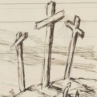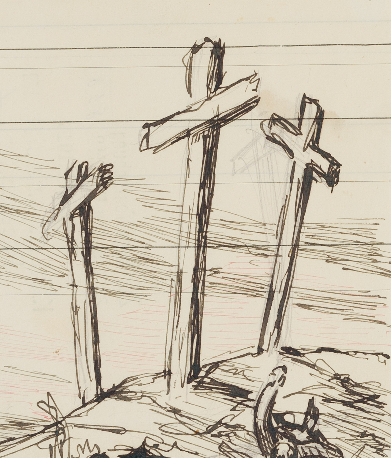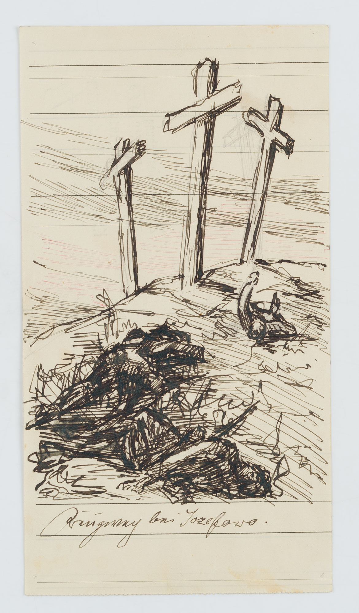 - Description: Ink drawing showing fallen soldiers of the 1st World War on a burial mound in the Ukrainian Jossypi ka (after 1918 the Polish Jzef ).