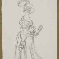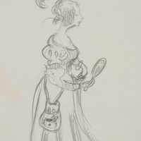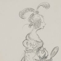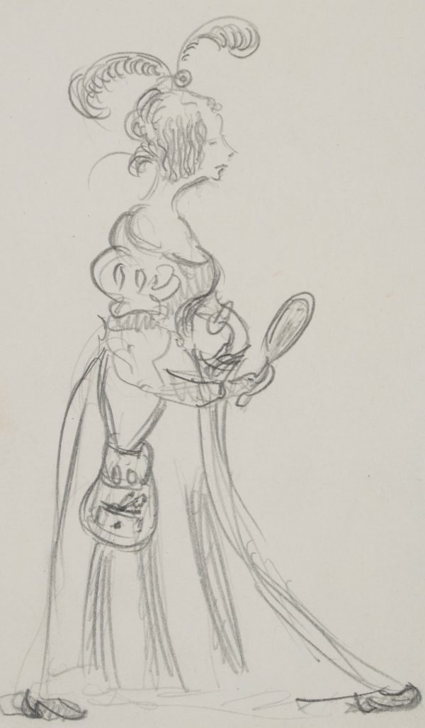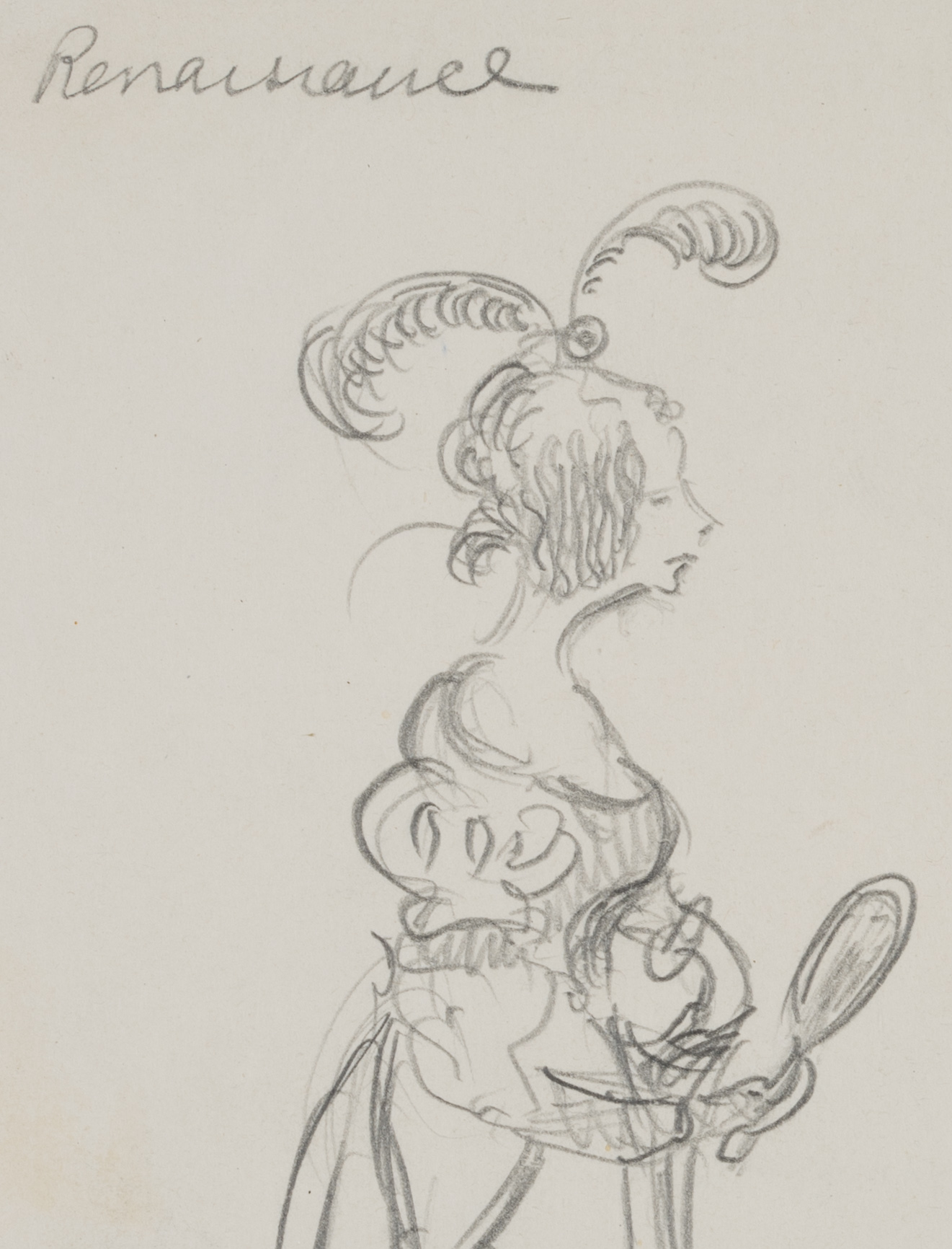 Bruno Burger (1892 – 1968 ), Caricature of Renaissance Fashion with Portrait of a Lady in Full Figure, c. 1900, Pencil