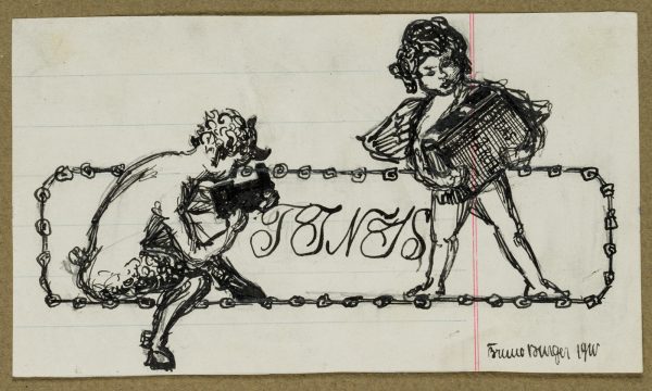 Bruno Burger (1892 – 1968 ), Musizierender Pan mit Panflöte und Putto mit Akkordeon, 1910, Tusche