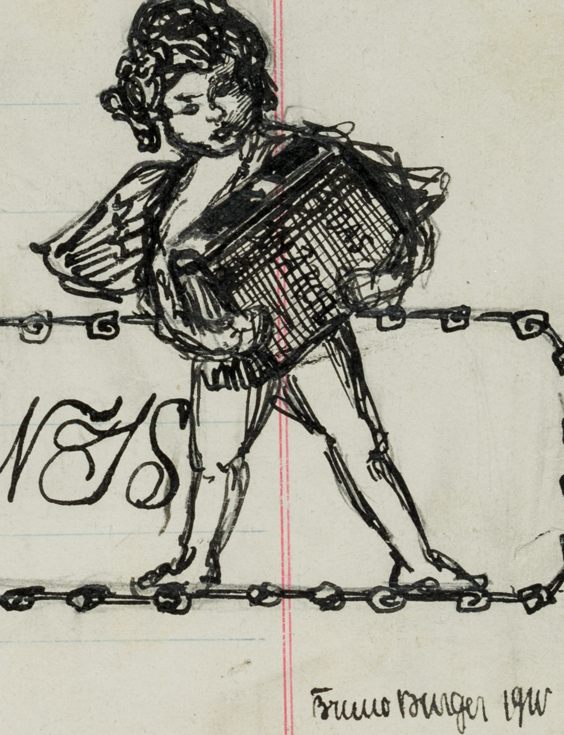 - Inscription: Signed and dated by the artist in the lower right corner of the drawing: “Bruno Burger 1910”.