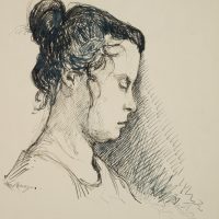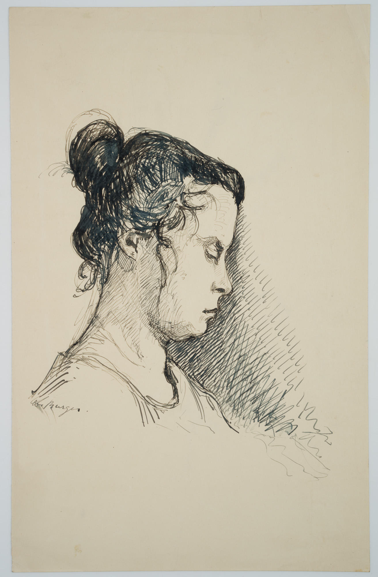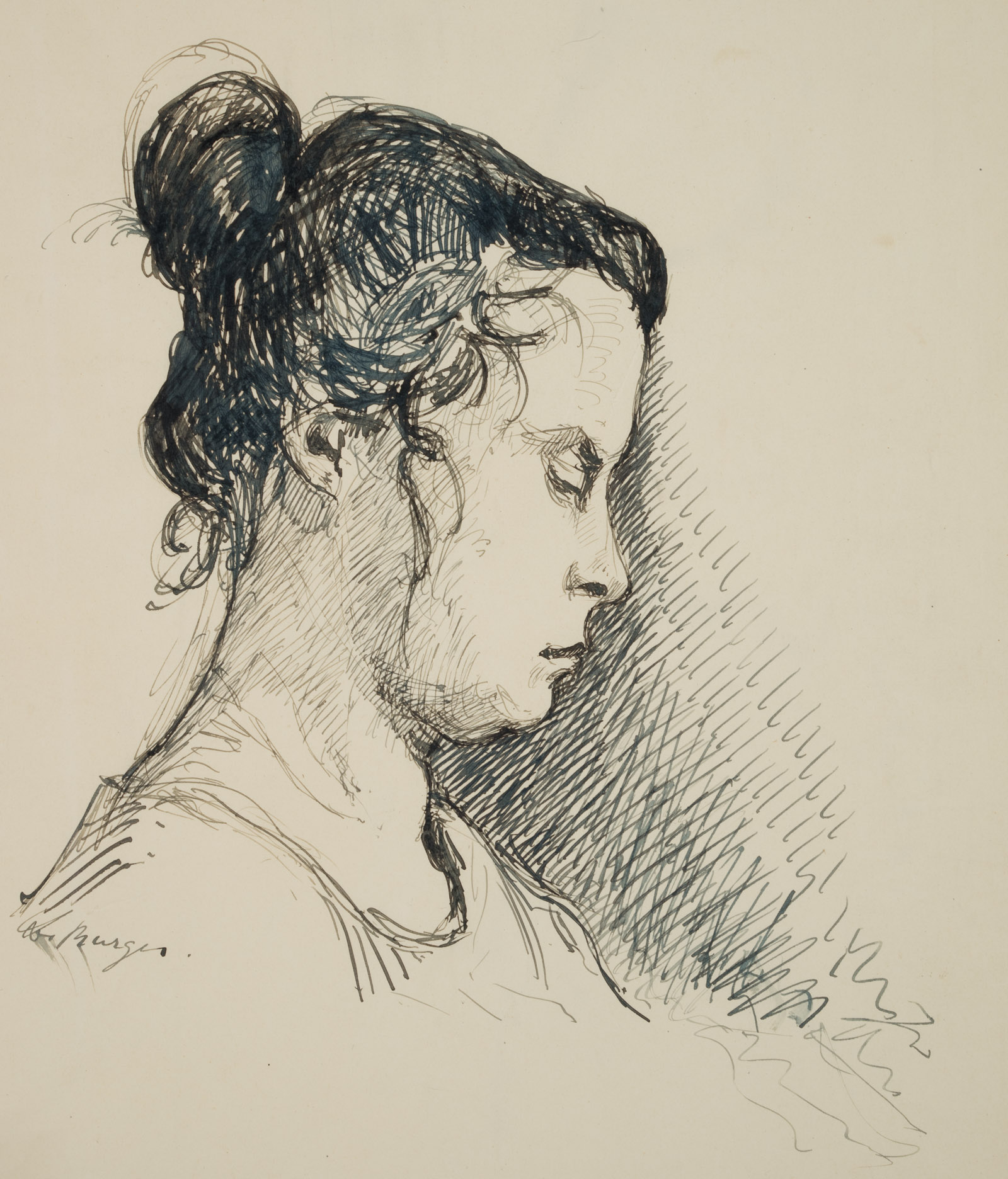 Bruno Burger (1892 – 1968 ), Porträt eines jungen Mädchens im Profil, , Tusche