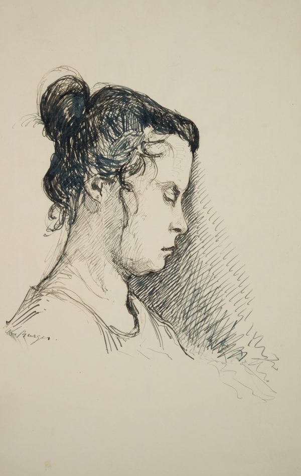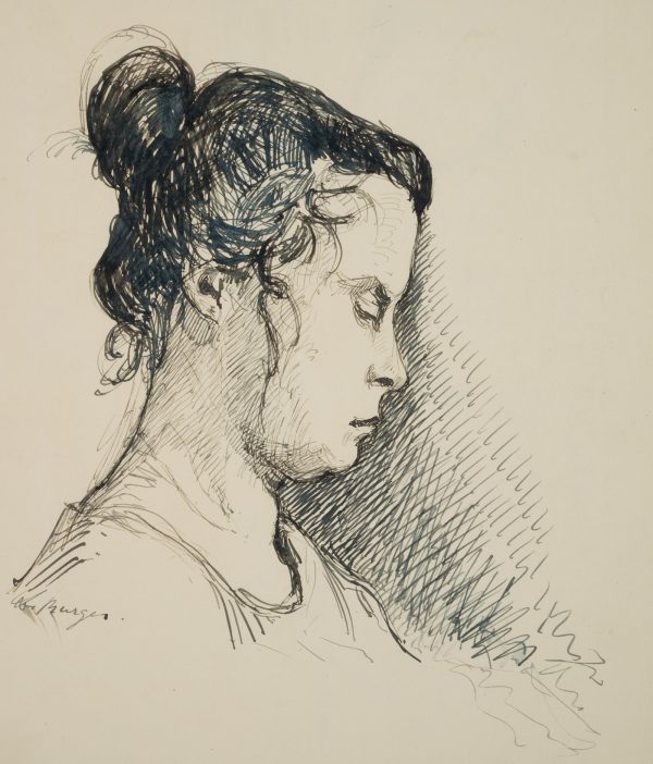 Bruno Burger (1892 – 1968 ), Portrait of a young girl in profile, , Indian ink