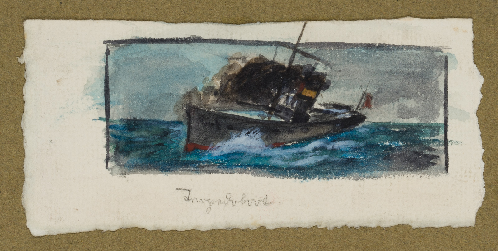 - Technik: Aquarell auf Papier, montiert auf Pappe