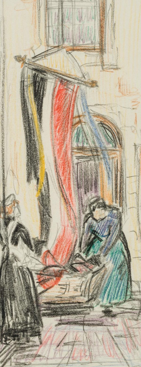 Bruno Burger (1892 – 1968 ), “Siegesnachricht”, Erster Weltkrieg, , Buntstift