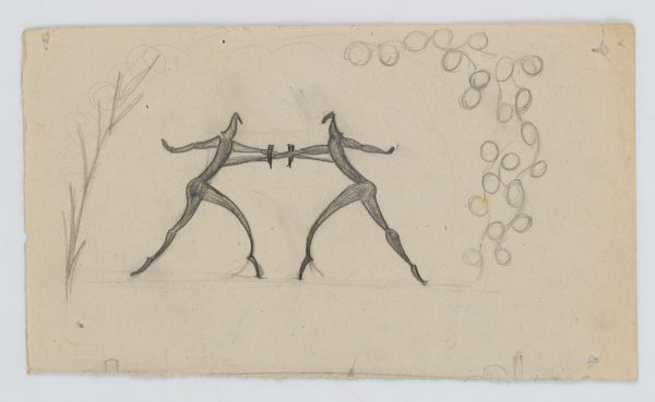 Bruno Burger (1892 – 1968 ), Scene of a fencing match on a stage with graceful figures, , Pencil