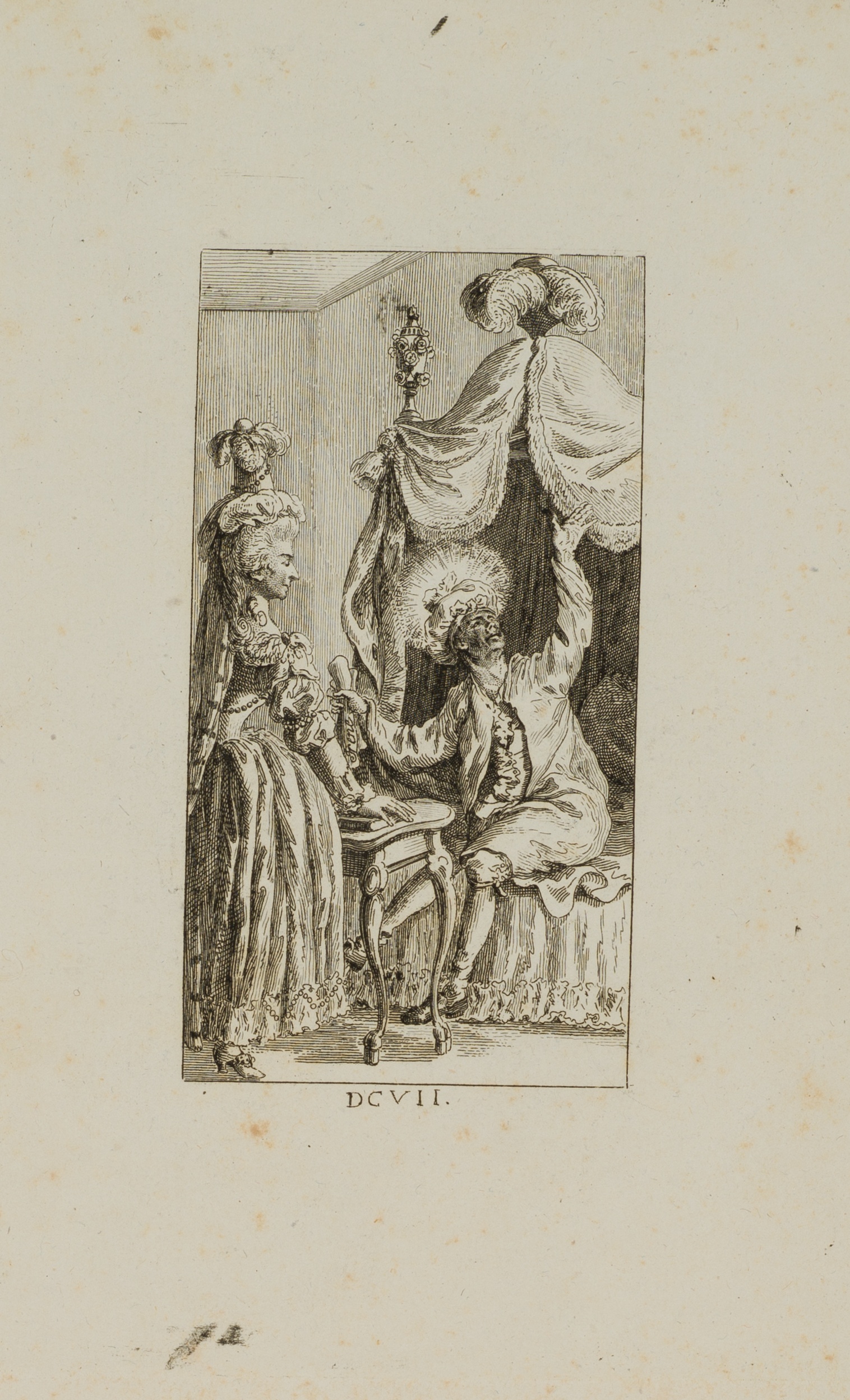 Balthasar Anton Dunker (1746 Saal bei Stralsund – 1807 Bern), Mann mit Nimbus und Hofdame, um 1780, Radierung