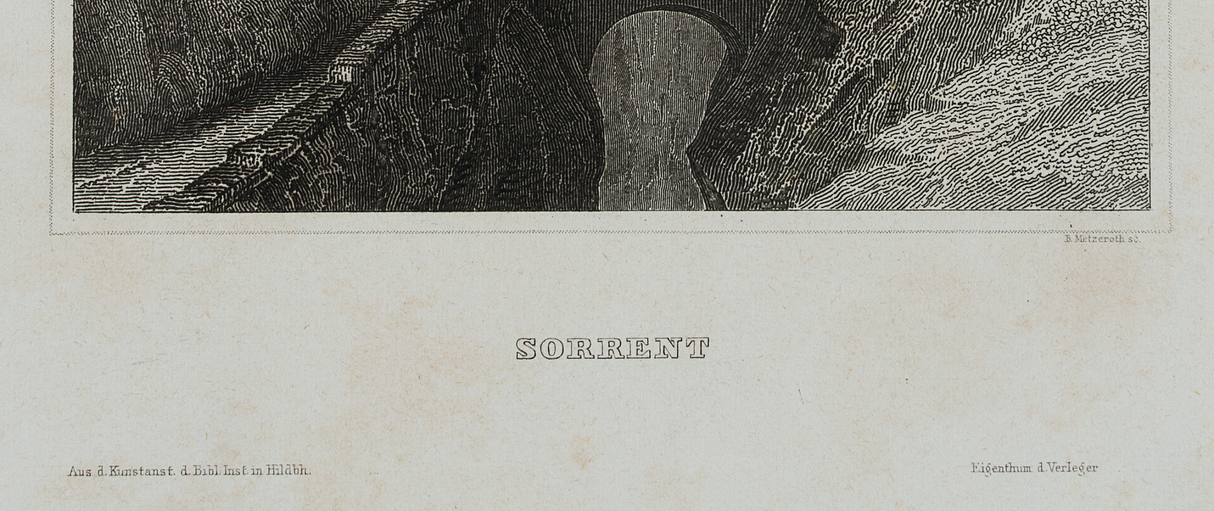 - Bezeichnung: Unten rechts im Druck signiert: „B. Metzeroth sc.“. Unten im Druck bezeichnet: „Sorrent“.