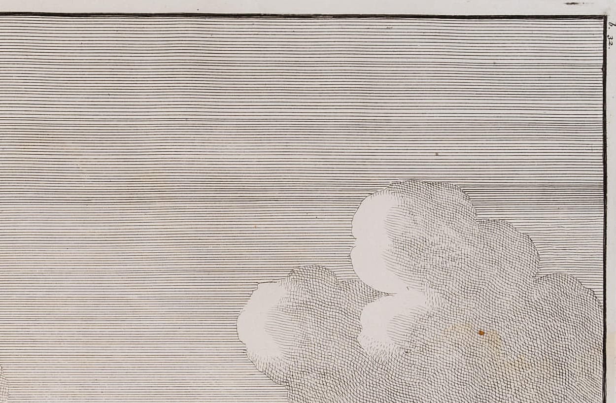 - Zustand: Sehr guter Zustand. Blatt insgesamt leicht wellig. Auf dem Blattrand blass fleckig und teils durch Flüssigkeitsflecken verfärbt. Entlang der Kanten leicht verbräunt. Die Darstellung macht einen sehr guten und frischen Eindruck. Winziger rostroter Fleck in der Druckplatte er Darstellung rechts sowie auf dem Blattrand unten.