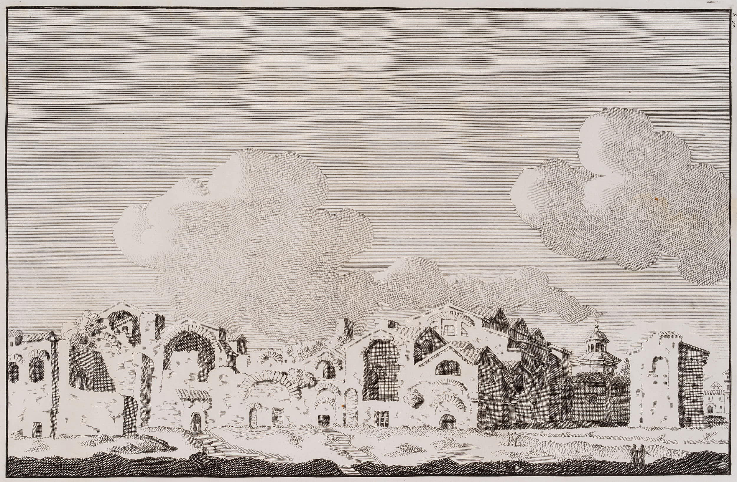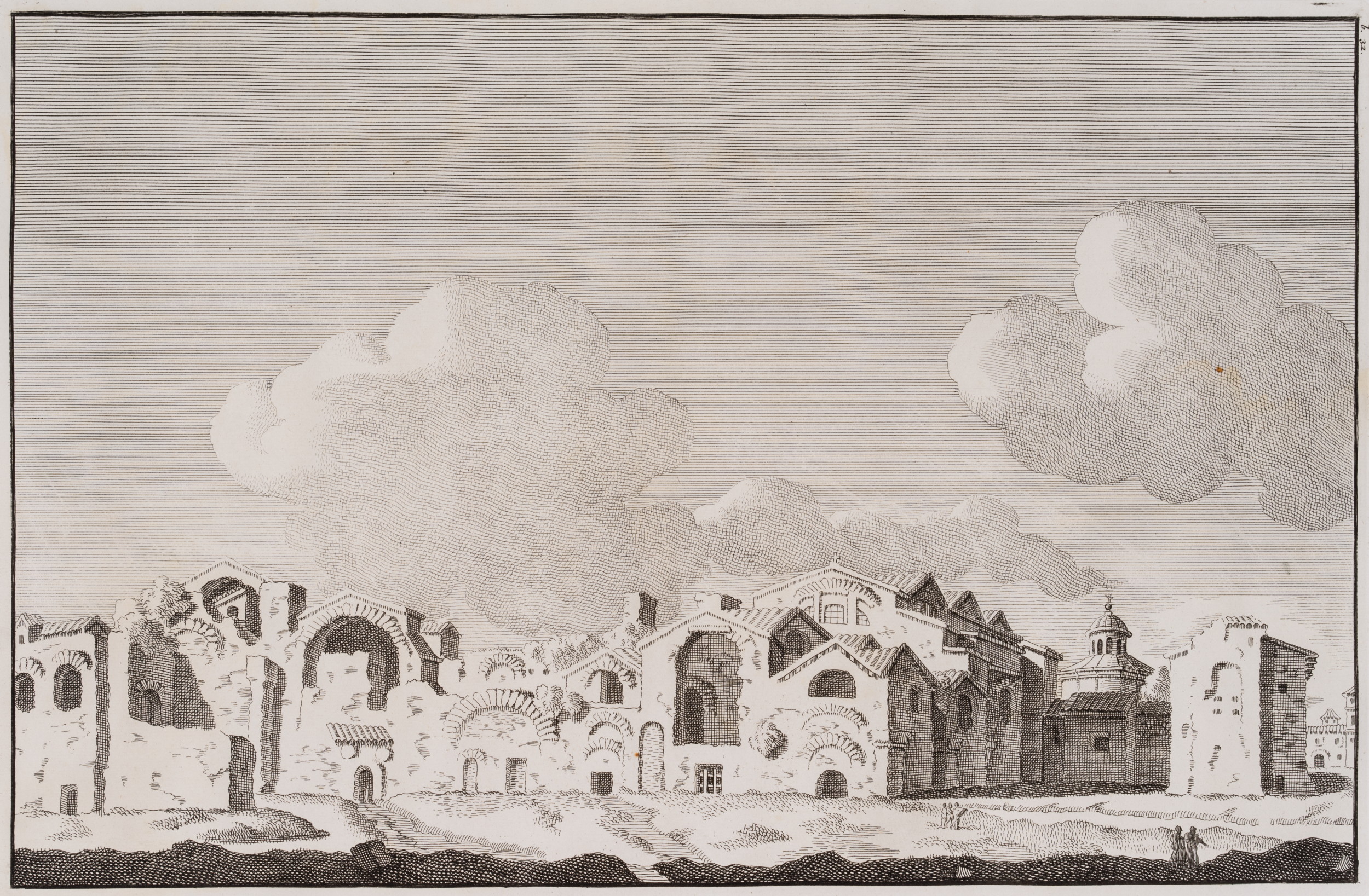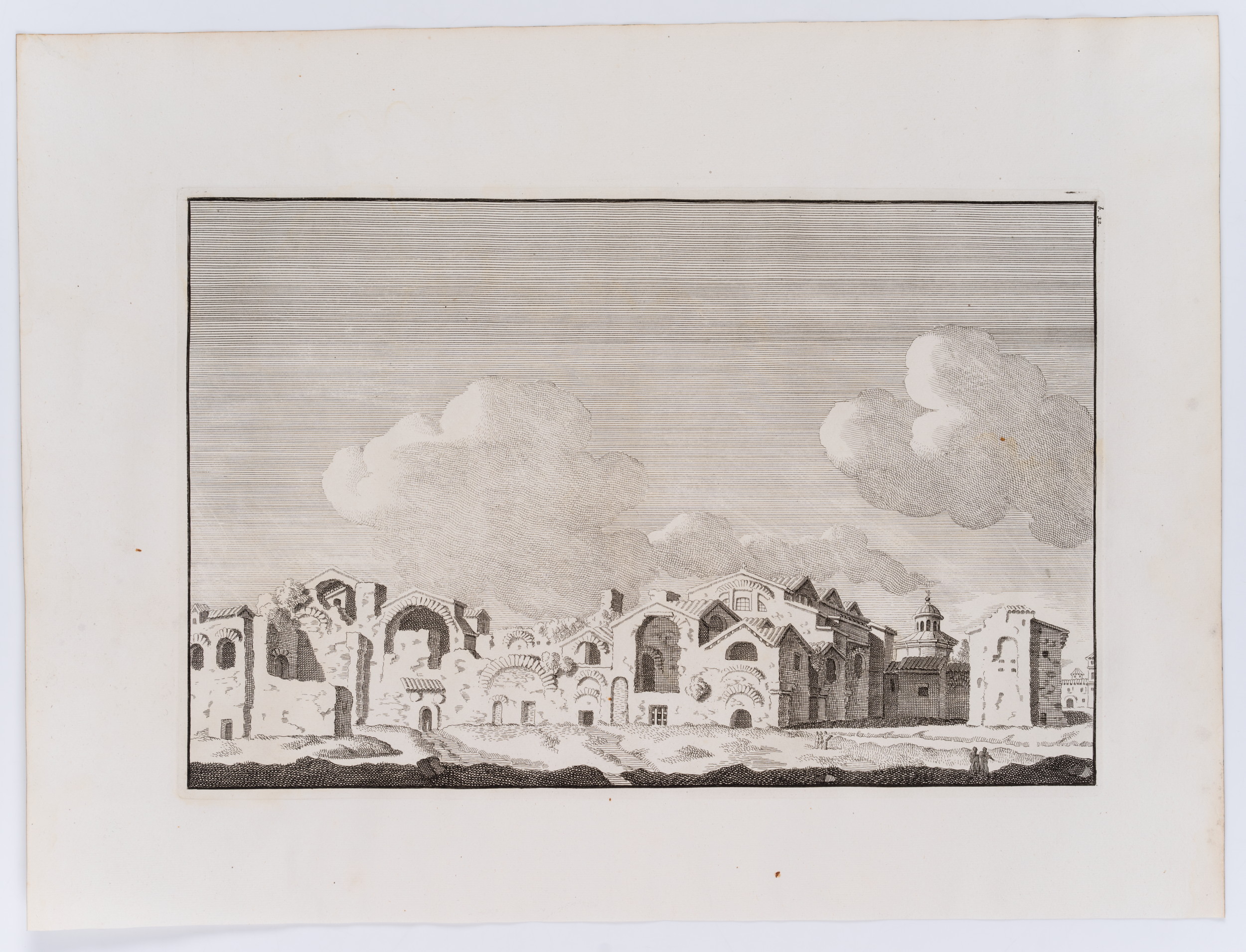 - Schlagworte: Römisches Reich, Antike, Ruine, Bauwerk, Monument, Stadtbild, Thermen, Bäder, Architektur, Italien, Rom (Latium), Klassizismus, 1700-1749