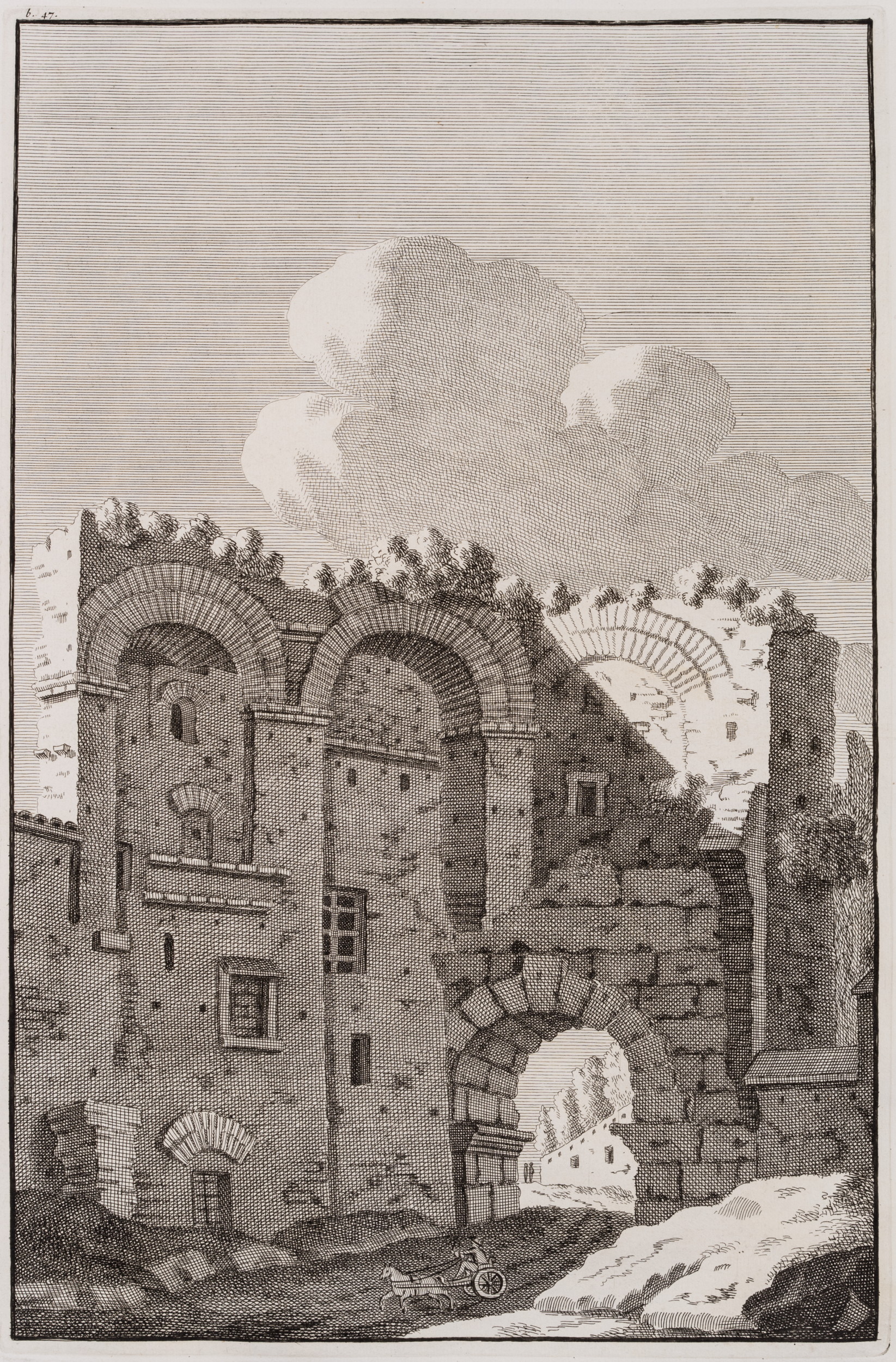 Bonaventura van Overbeke (1660 Amsterdam – 1705 ibid.), L’Aqueduc d’Antonin, Ancient water conduit, Aqueduct of Antonius, Rome, 1709, Etching