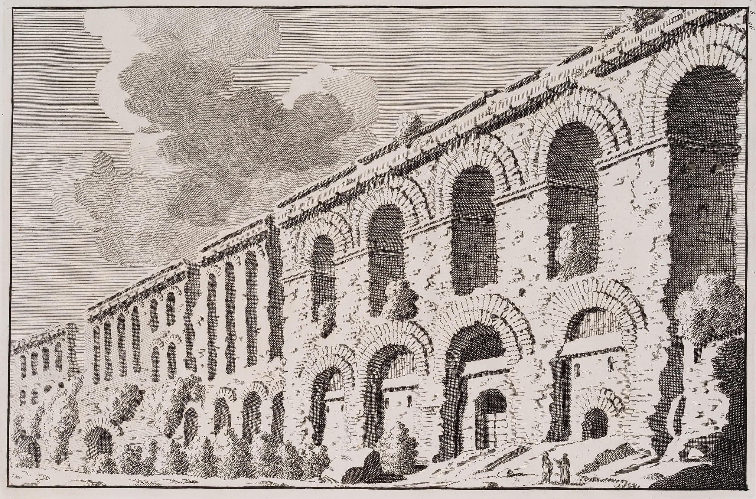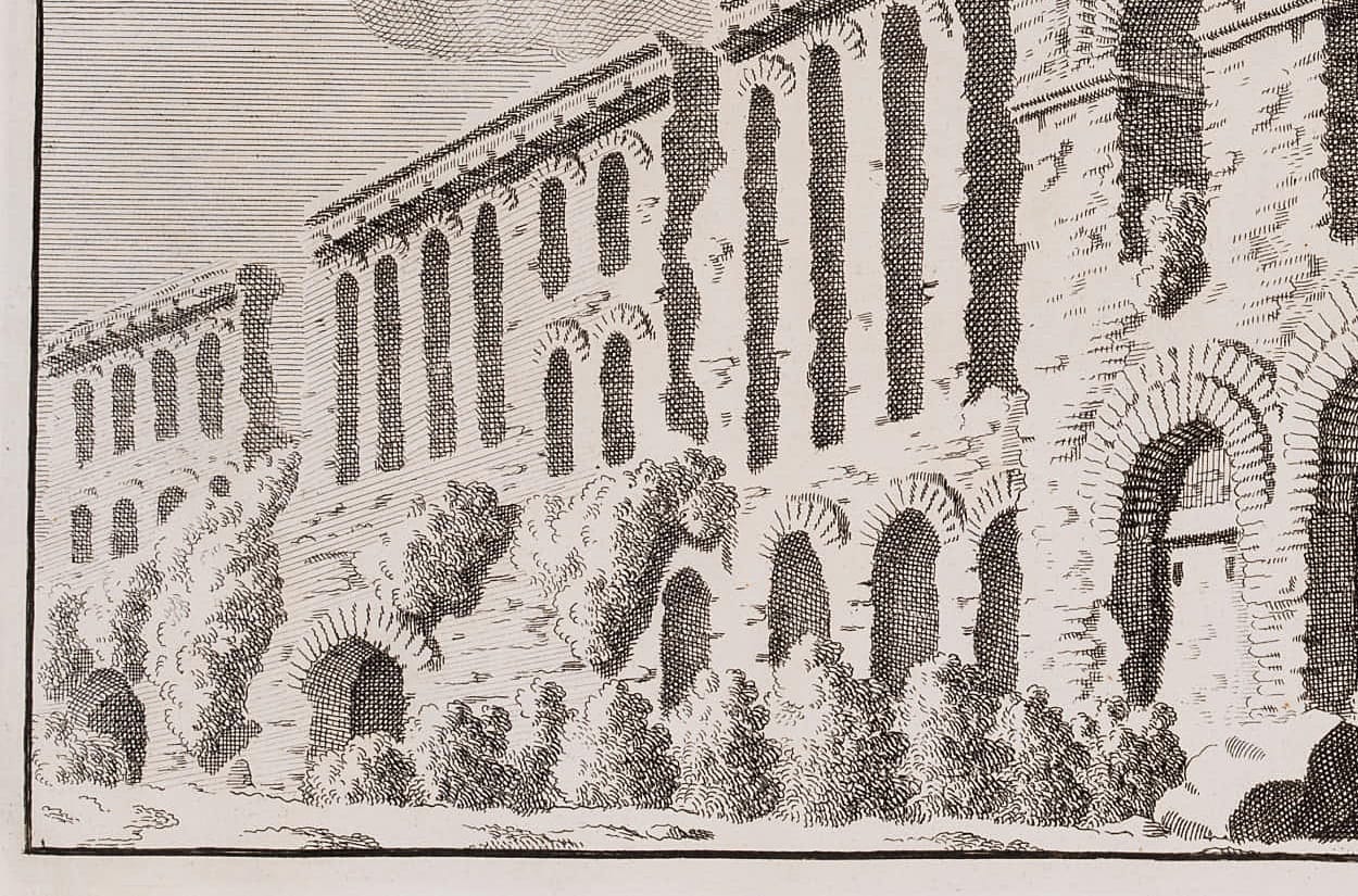 - Schlagworte: Römisches Reich, Antike, Ruine, Bauwerk, Monument, Stadtbild, Aquädukt, Wasserleitung, Brunnen, Wasserversorgung, Architektur, Italien, Rom (Latium), Klassizismus, 1700-1749