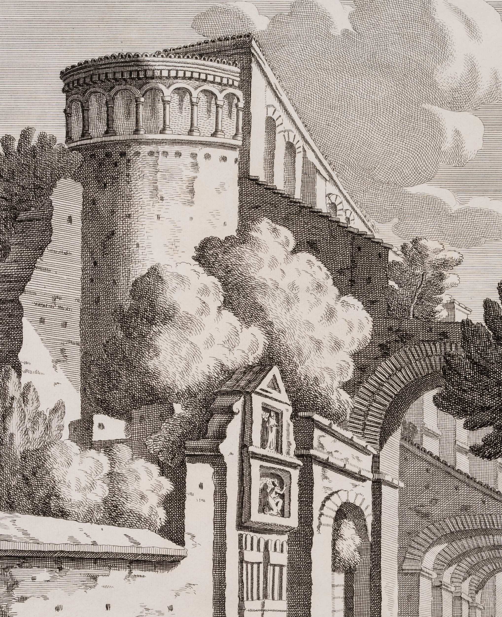 • Schlagworte: Römisches Reich, Antike, Ruine, Bauwerk, Monument, Stadtbild, Aquädukt, Wasserleitung, Brunnen, Wasserversorgung, Architektur, Italien, Rom (Latium), Klassizismus, 1700-1749