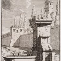Bonaventura van Overbeke (1660 Amsterdam – 1705 ibid.), The Ancient Fountain on the Roman Square, Antiker Brunnen in Rom, 1709, Etching