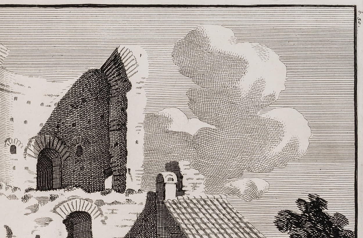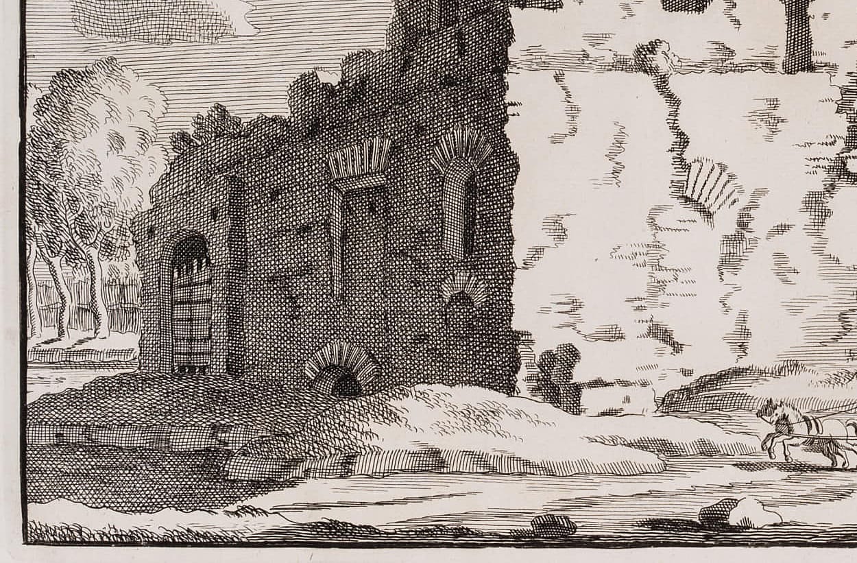 Bonaventura van Overbeke (1660 Amsterdam – 1705 ebd.), Le Reservoir de L’Eau Martie, Antiker Wasserspeicher auf dem Campus Martius, Rom, 1709, Radierung