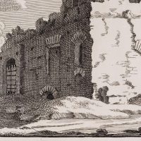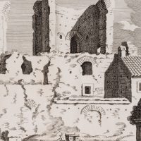 Bonaventura van Overbeke (1660 Amsterdam – 1705 ibid.), Le Reservoir de L’Eau Martie, Ancient water reservoir on the Campus Martius, Rome, 1709, Etching