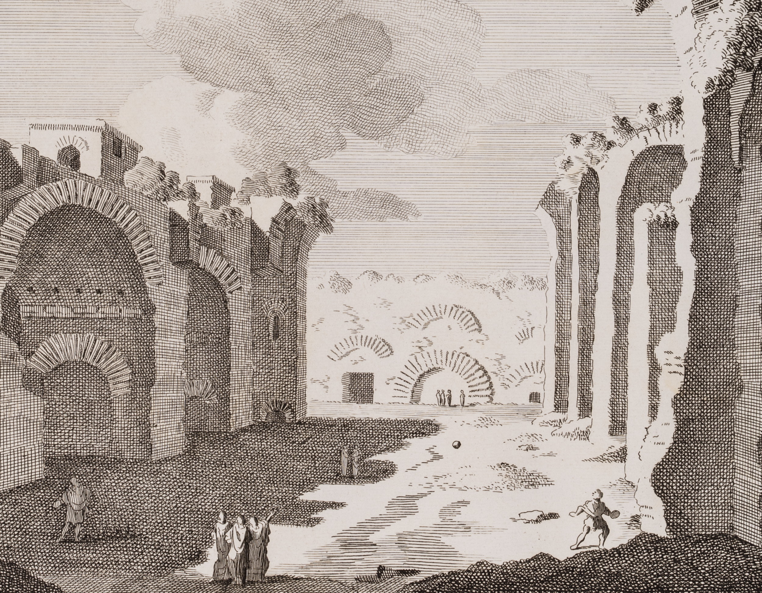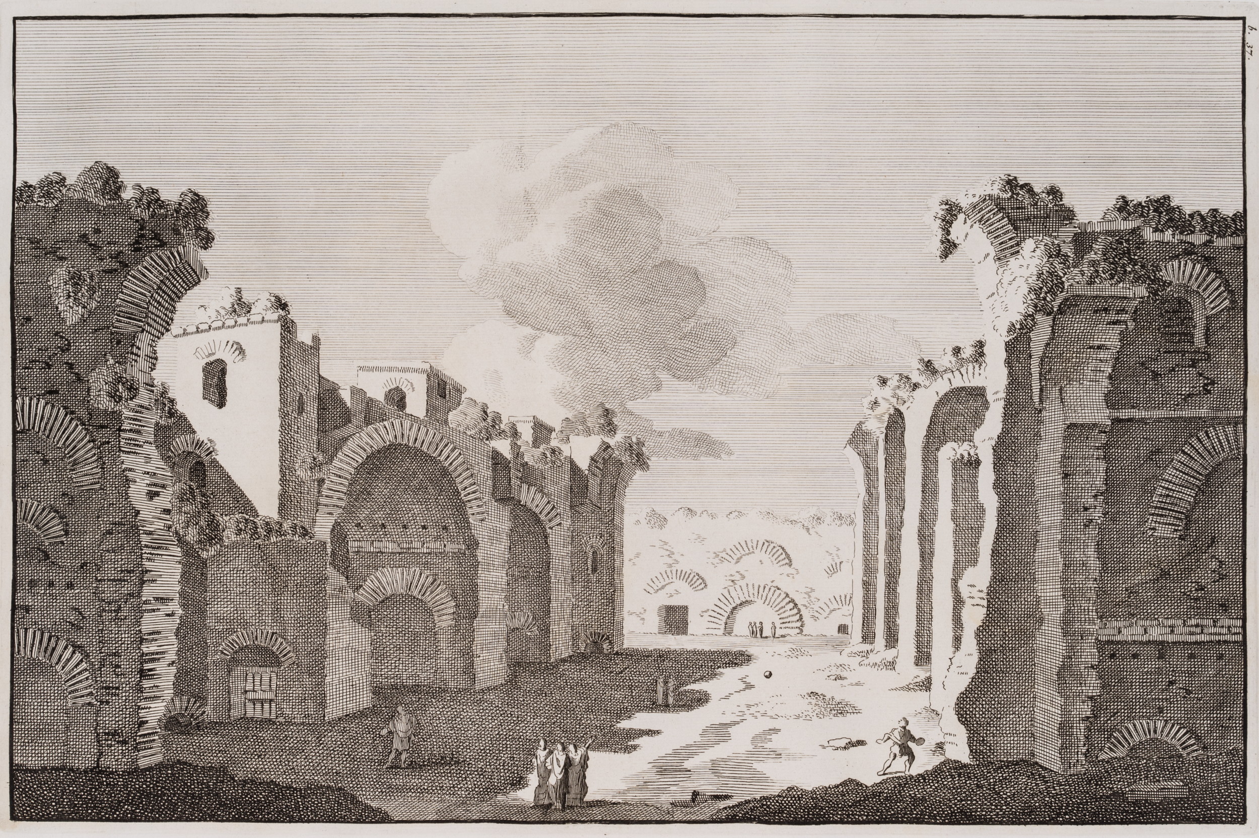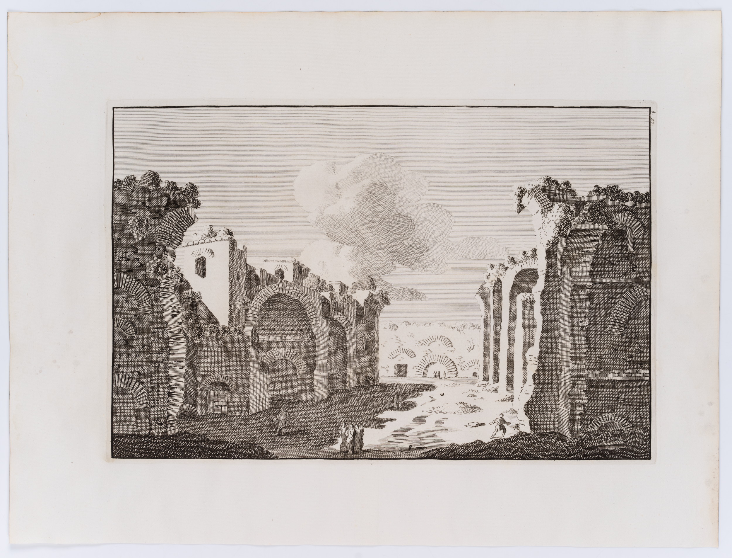 - Schlagworte: Römisches Reich, Antike, Ruine, Bauwerk, Monument, Stadtbild, Thermen, Bäder, Architektur, Italien, Rom (Latium), Klassizismus, 1700-1749