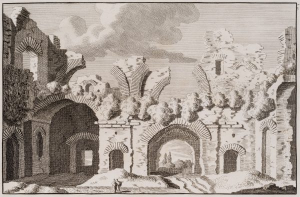 Bonaventura van Overbeke (1660 Amsterdam – 1705 ebd.), Les Bains d’Antonin, In den Caracalla-Thermen in Rom, 1709, Radierung