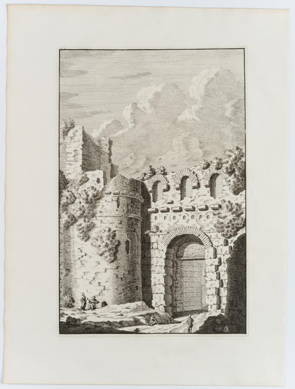 Bonaventura van Overbeke (1660 Amsterdam – 1705 ibid.), Porta Collina in Rom, “The Gate Agonense, Quirinale, Salarie, Lavernale & Salutarie, today Colline”, The Remains Of Ancient Rome, 1709, Etching