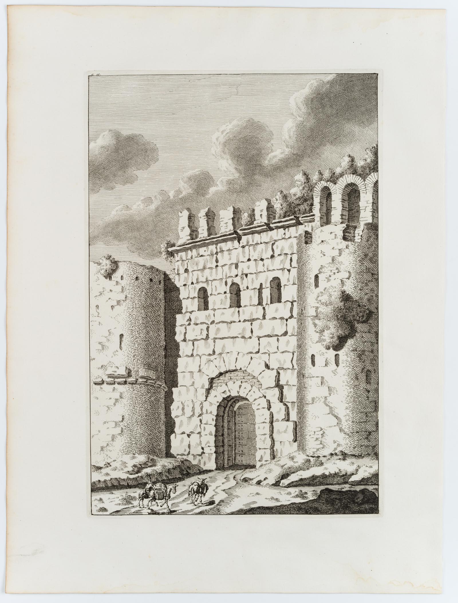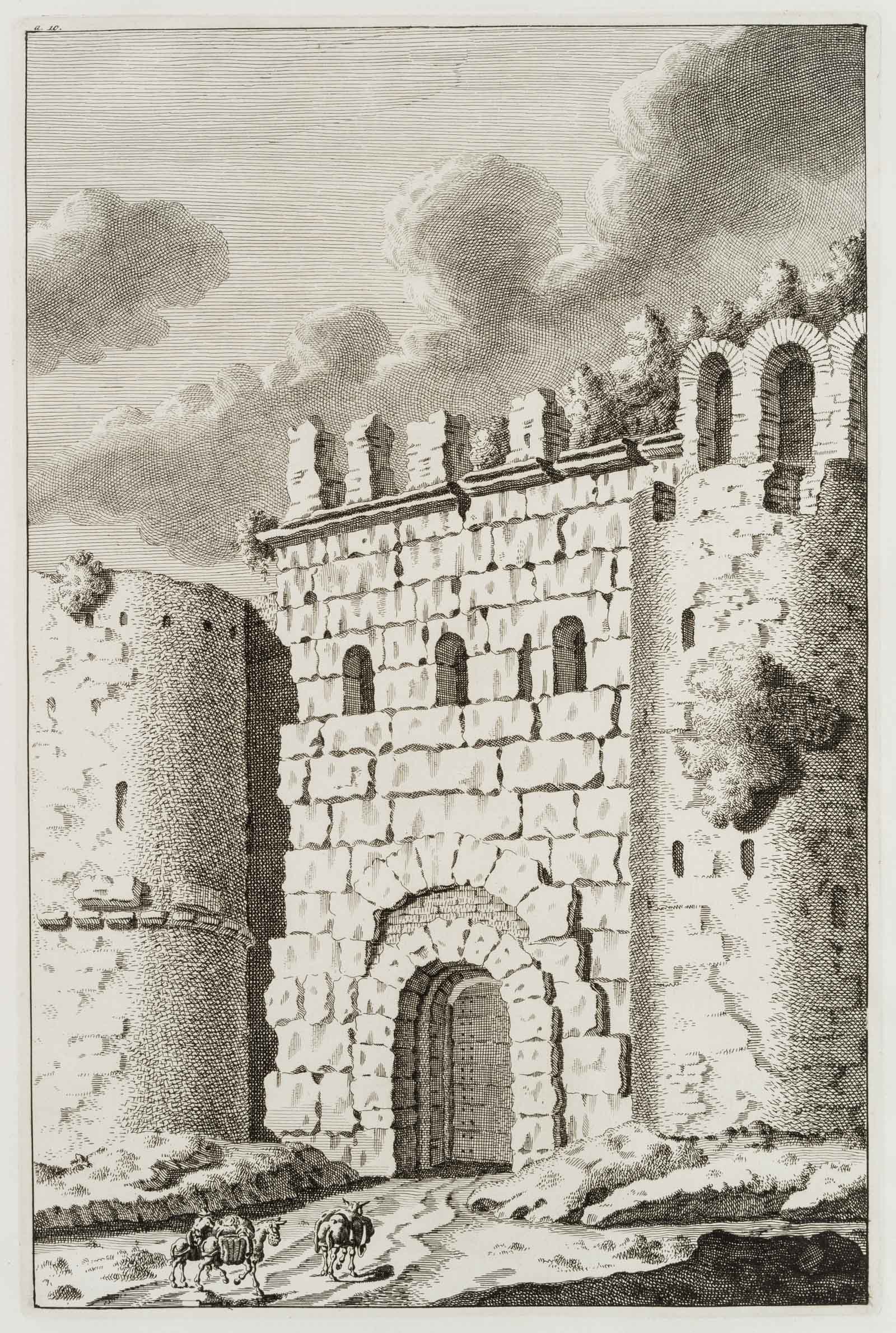 • Schlagworte: Römisches Reich, Antike, Ruine, Bauwerk, Monument, Stadtbild, Stadttor, Befestigung, Stadtmauer, Porta, Architektur, Stadtbilder, Italien, Rom (Latium), Klassizismus, 1700-1749
