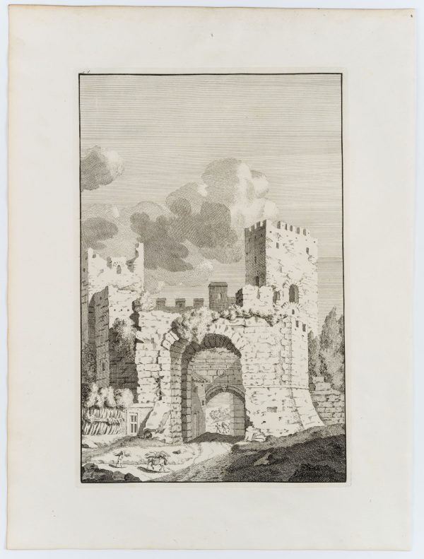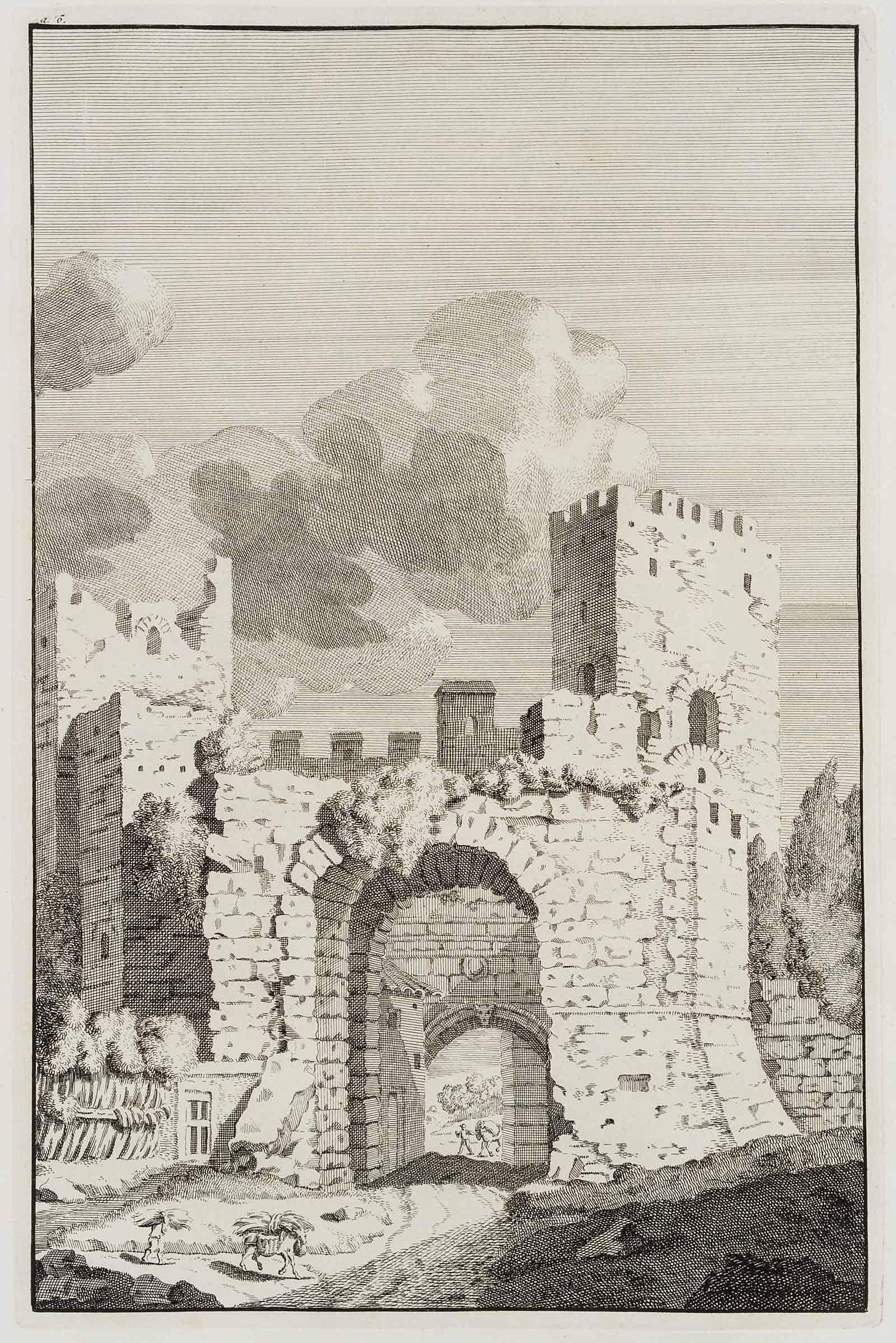Bonaventura van Overbeke (1660 Amsterdam – 1705 ebd.), Porta Tiburtina (auch Porta San Lorenzo oder Porta Taurina) in Rom, “La Porte Esquiline, Metie, Praestine, Tiburtine, Taurine, Libitine, aujourd’hui de S. Laurent”, Les Restes De L’Ancienne Rome, 1709, Radierung