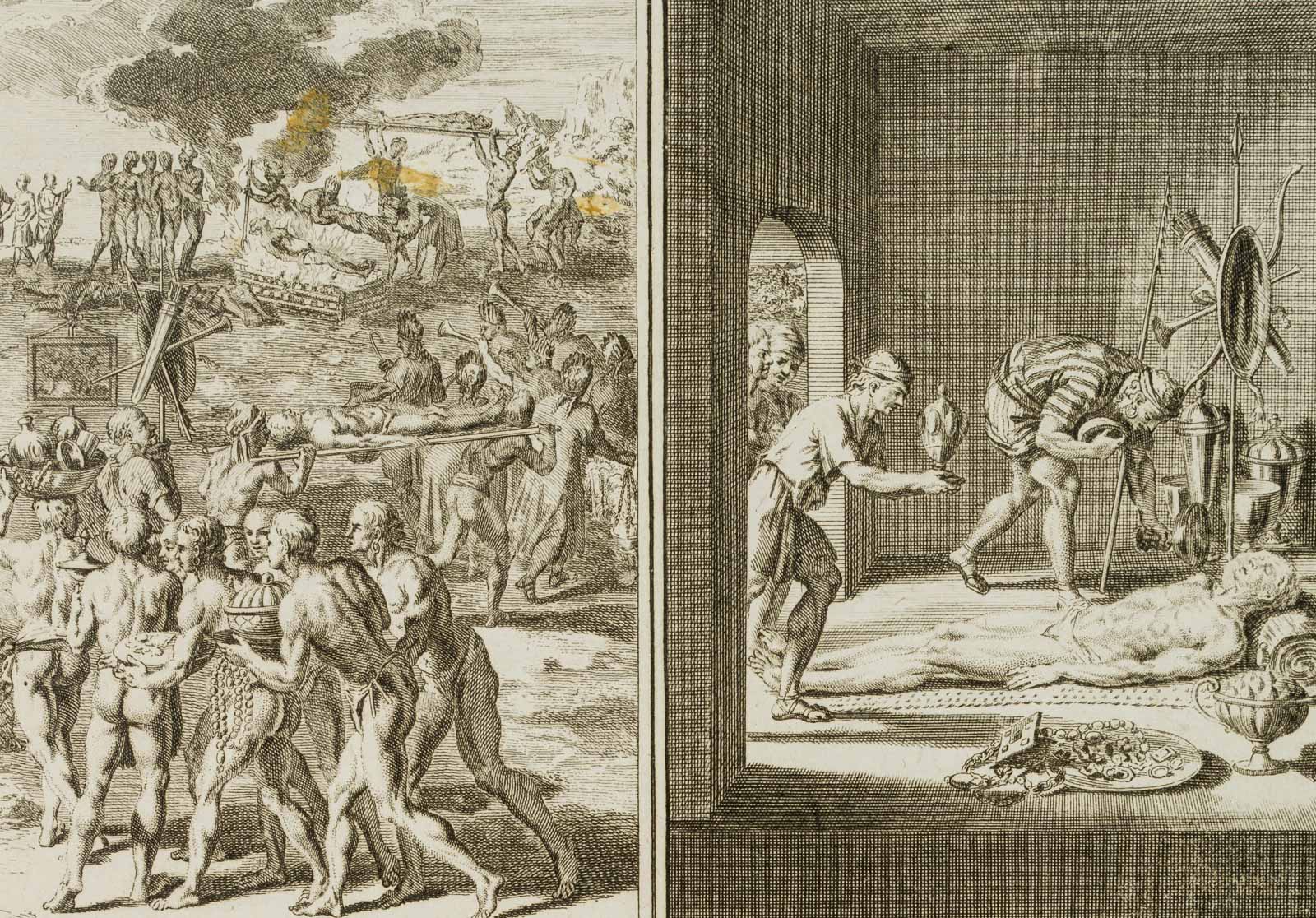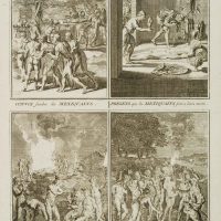 Bernard Picart (1673 Parus – 1733 Amsterdam), Four illustrations of funeral rites in Mexico, “Convoi funebre des Mexiquains”, book illustration, 1721, Copper engraving