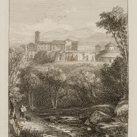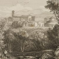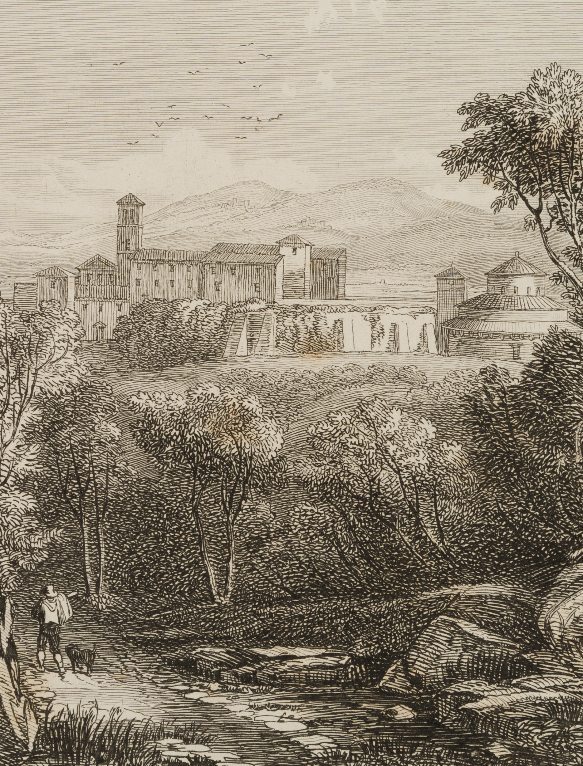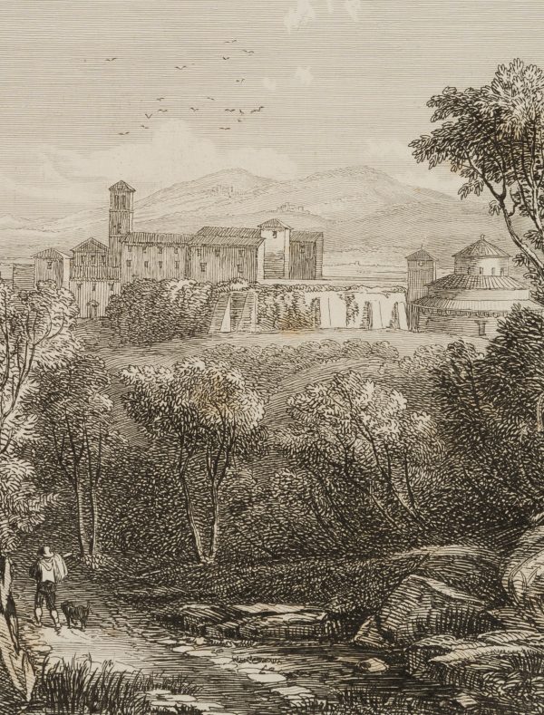 Bartolomeo Pinelli (1781 Rom – 1835 ebd.), Blick von einer Landstraße auf die Basilika Santo Stefano Rotondo, 1833, Radierung
