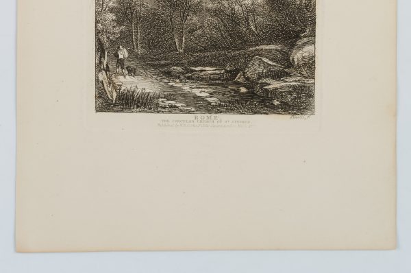 - Inscription: Lower right signed in the printing plate: “Pinelli f.”. Lower middle inscribed in the printing plate: “Rome. The circular church of St. Stephen.”.