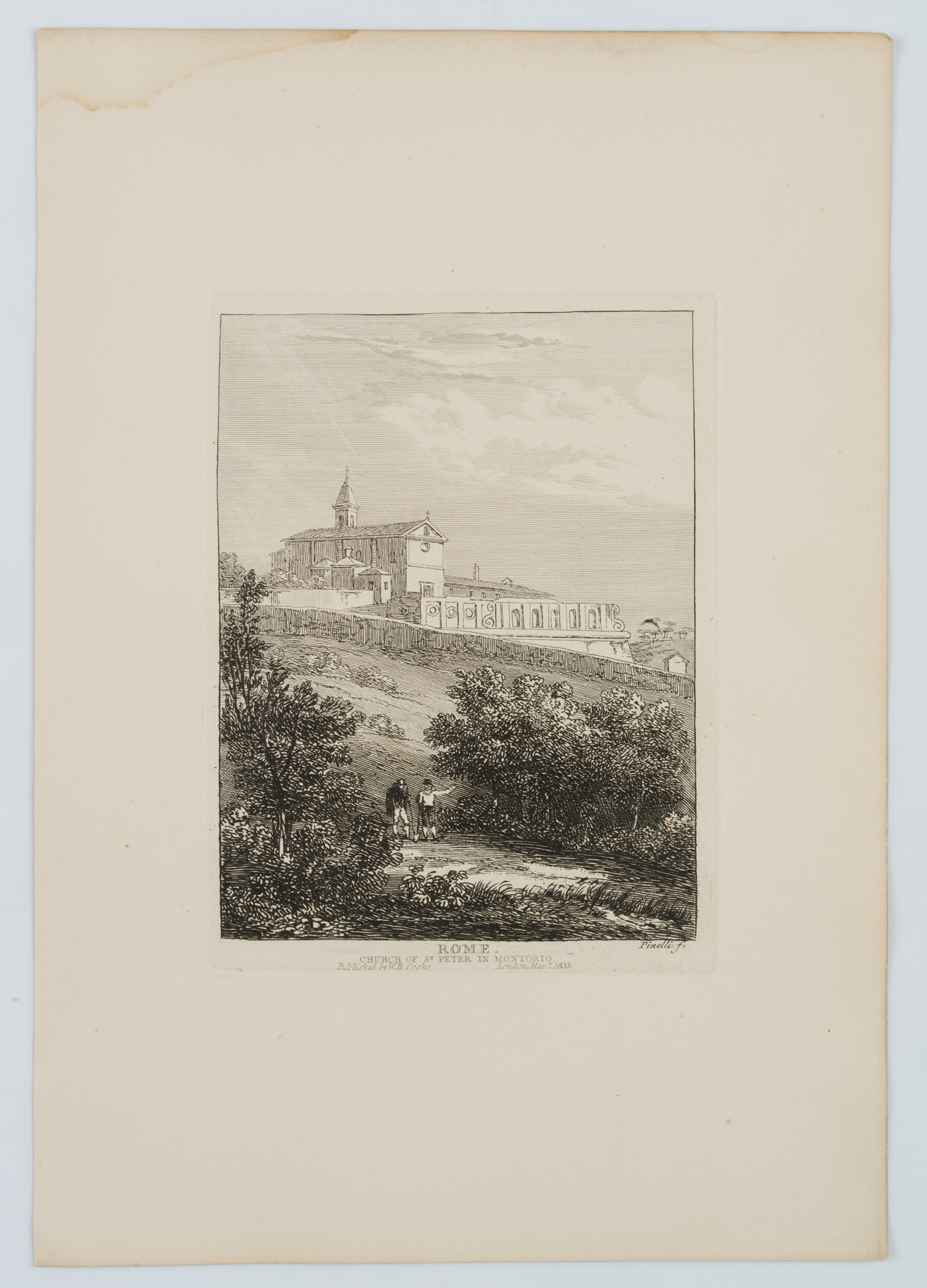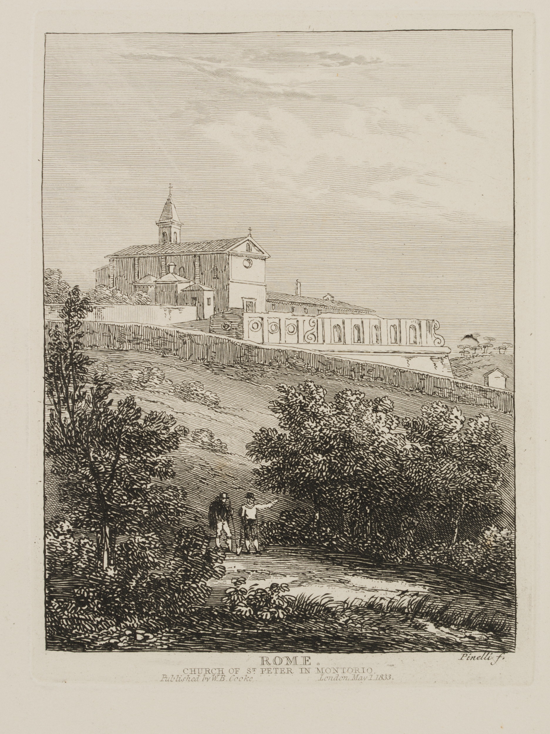 - Bezeichnung: Unten rechts im Druck signiert: “Pinelli f.”. Unten mittig im Druck bezeichnet: “Rome. Church of St. Peter in Montorio”.