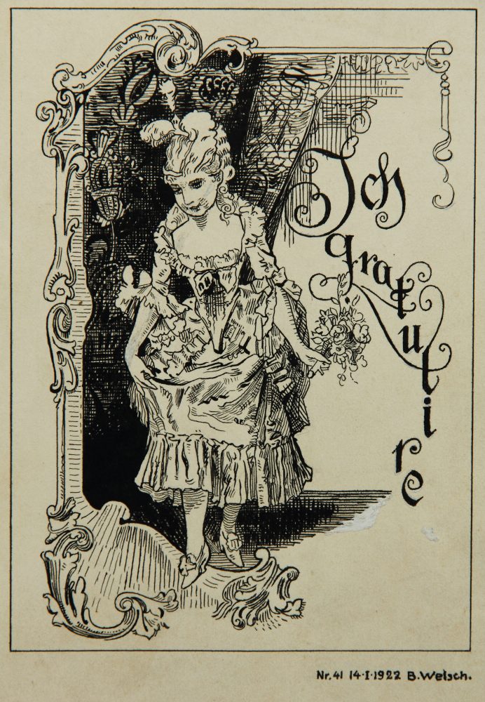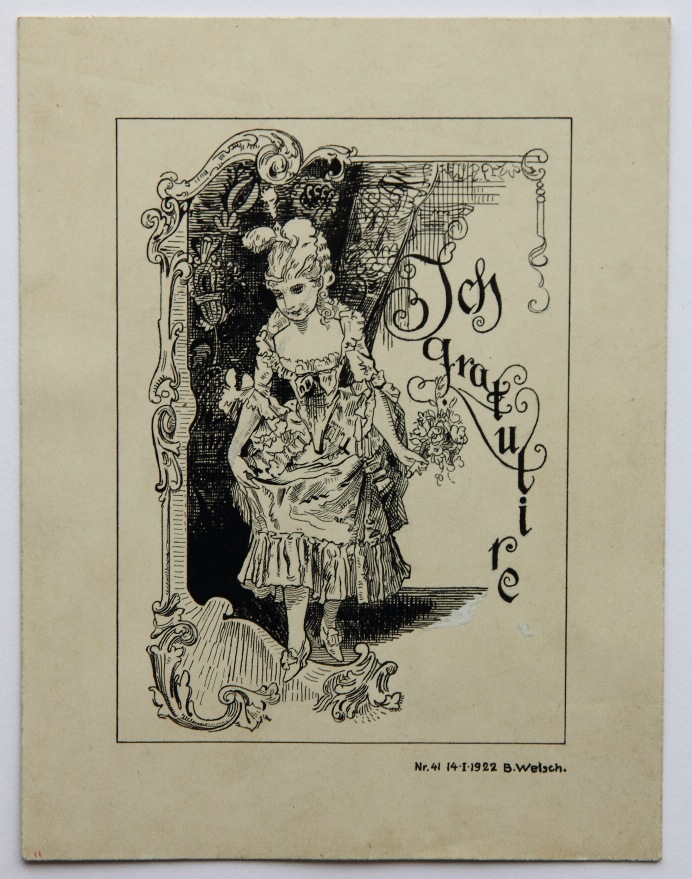 Benno Welsch (20th century), Congratulations card design, 1922, Indian ink